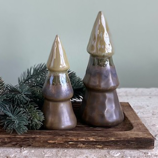 Juletræ D7x15cm porcelæn Green/brow