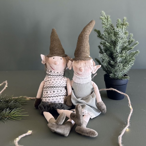 Disse to fine skovnisser har ris i numsen og kan sidde selv og købes hver for sig.