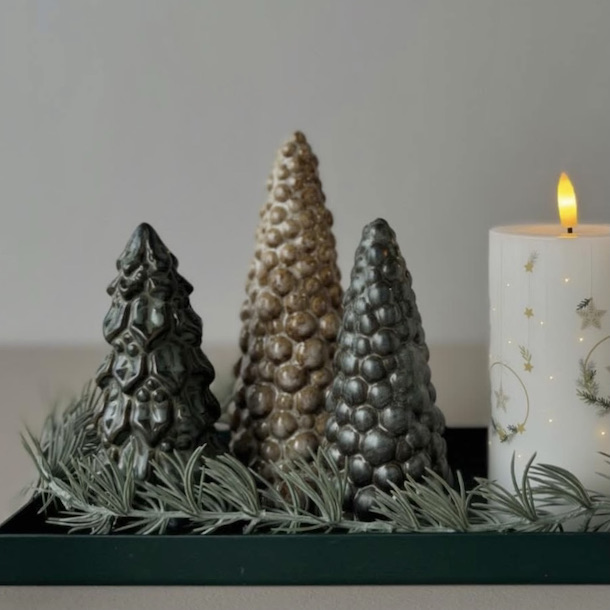 En rigtig fin lille grøn juletræ i keramik med bobler.