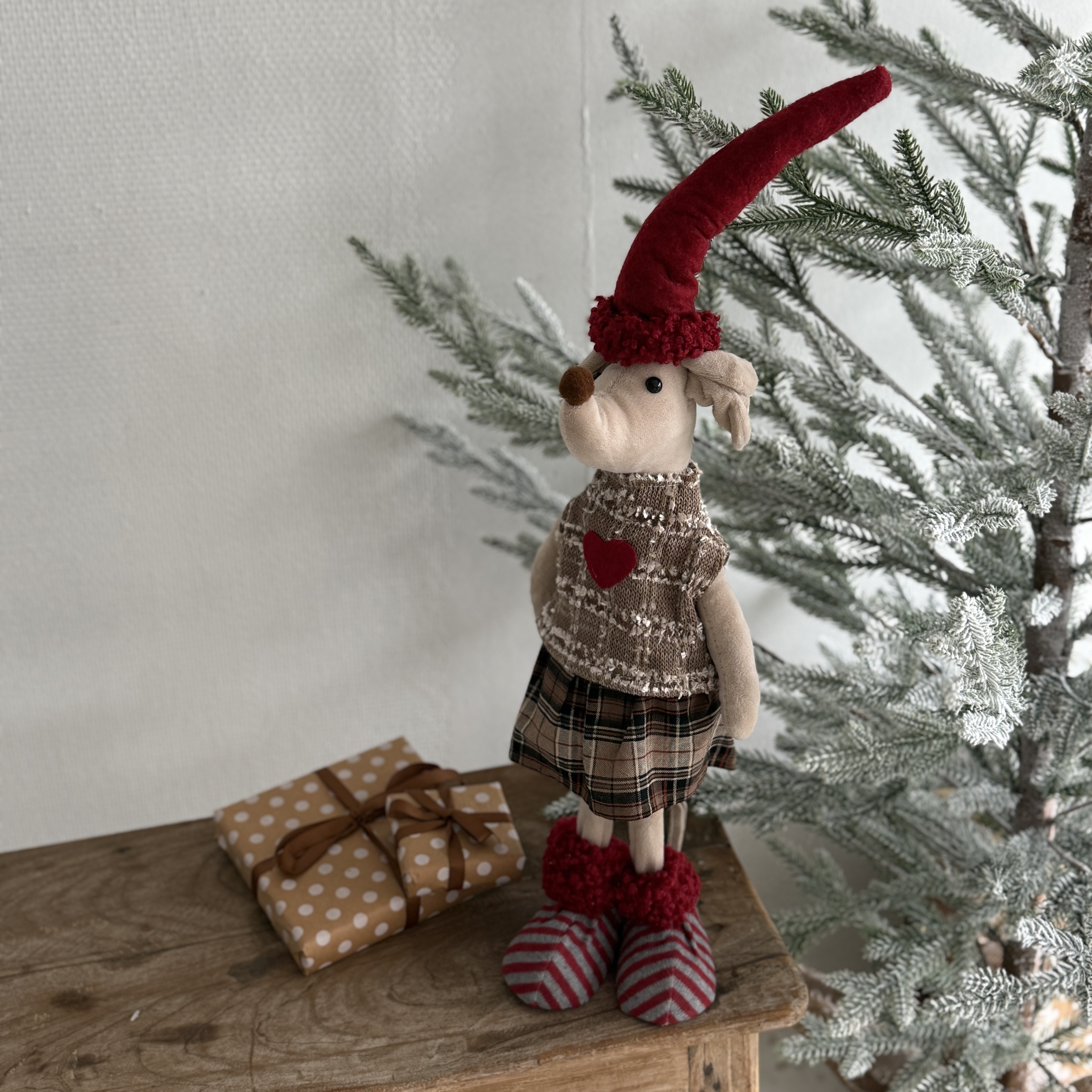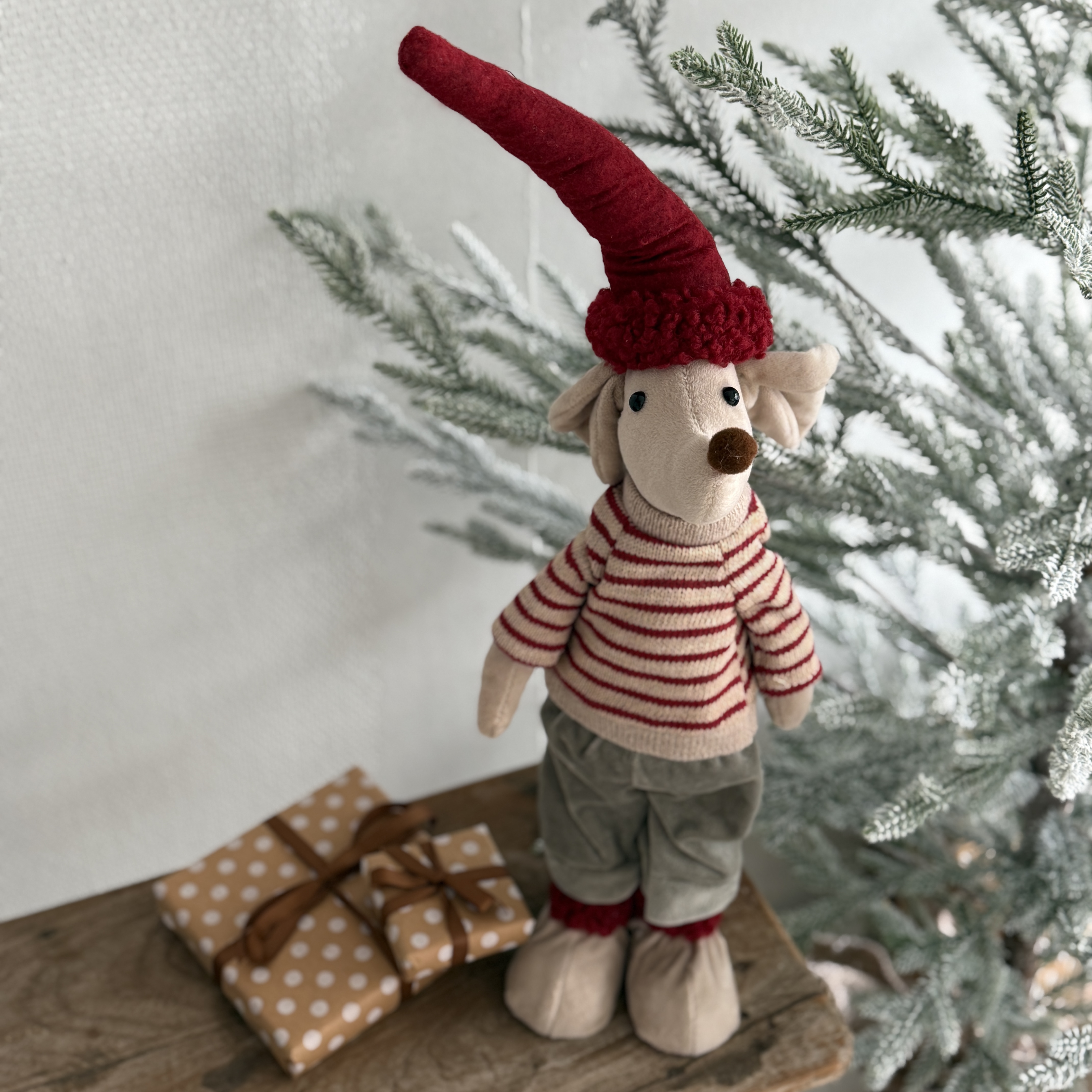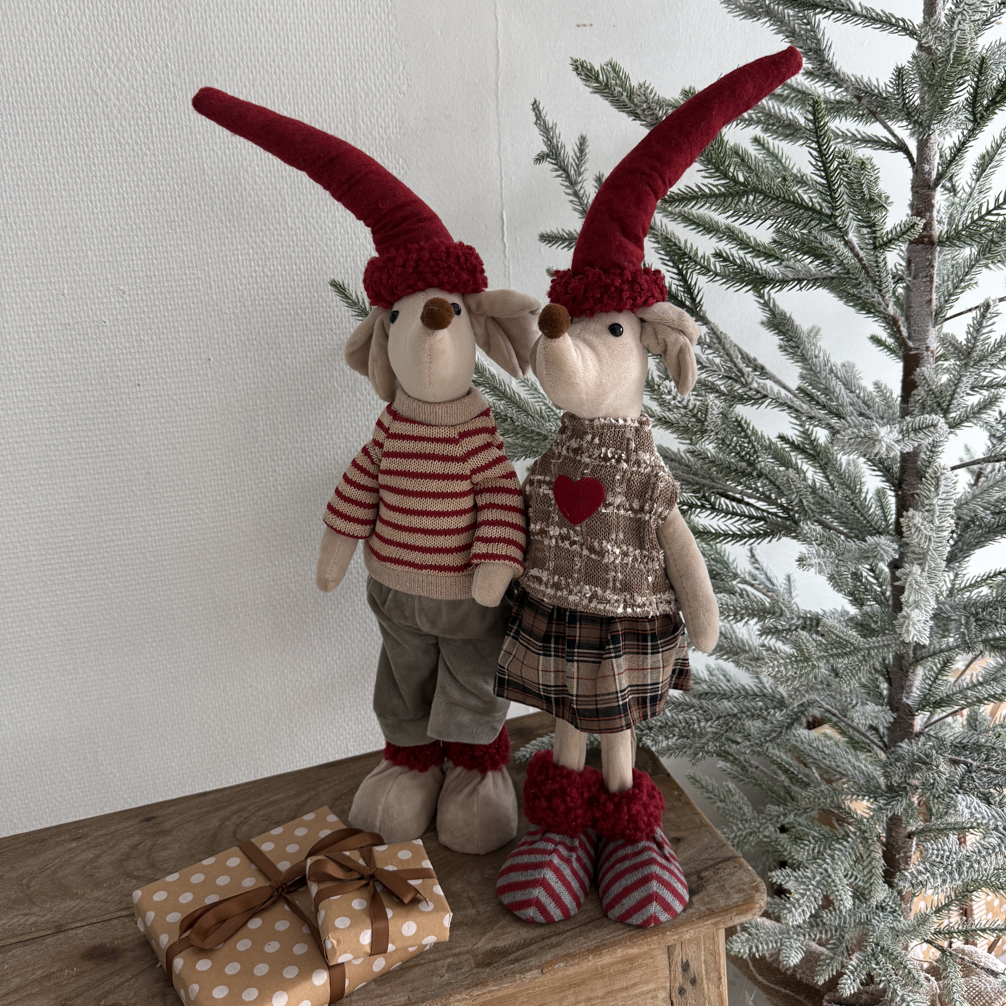 Rigtig søde drenge og pige jule mus i stof med strik bluser, knap øjne og nieehuer.