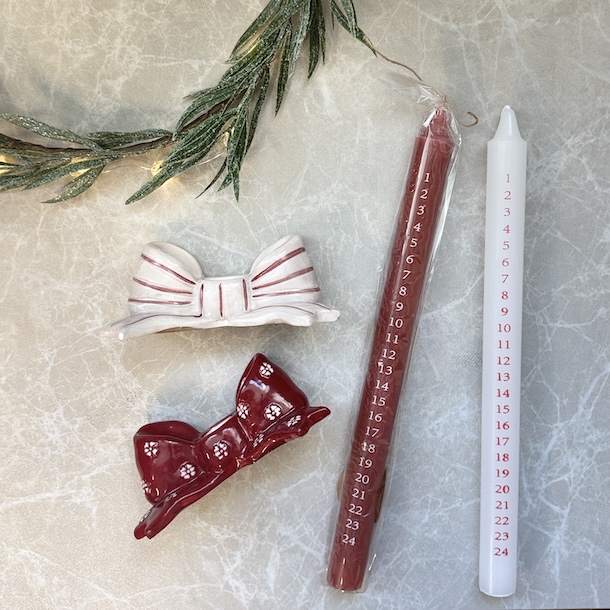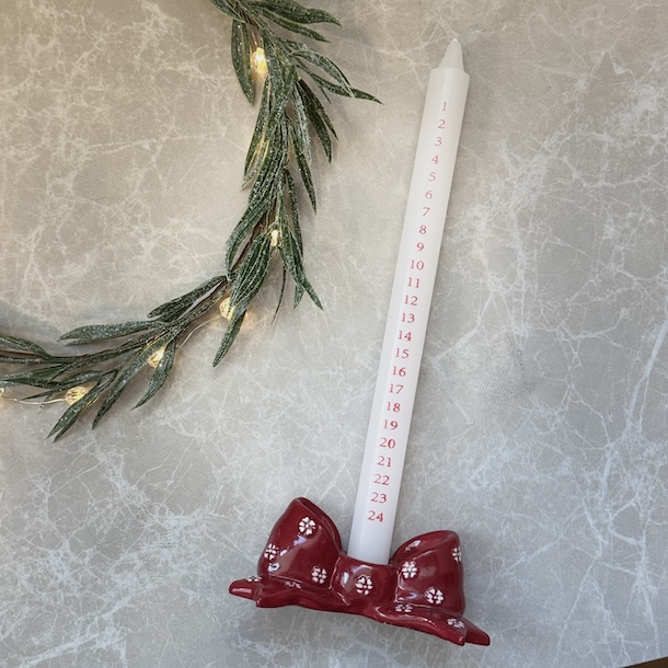 Rigtig fin sløjfe lysestage og kalenderlys.