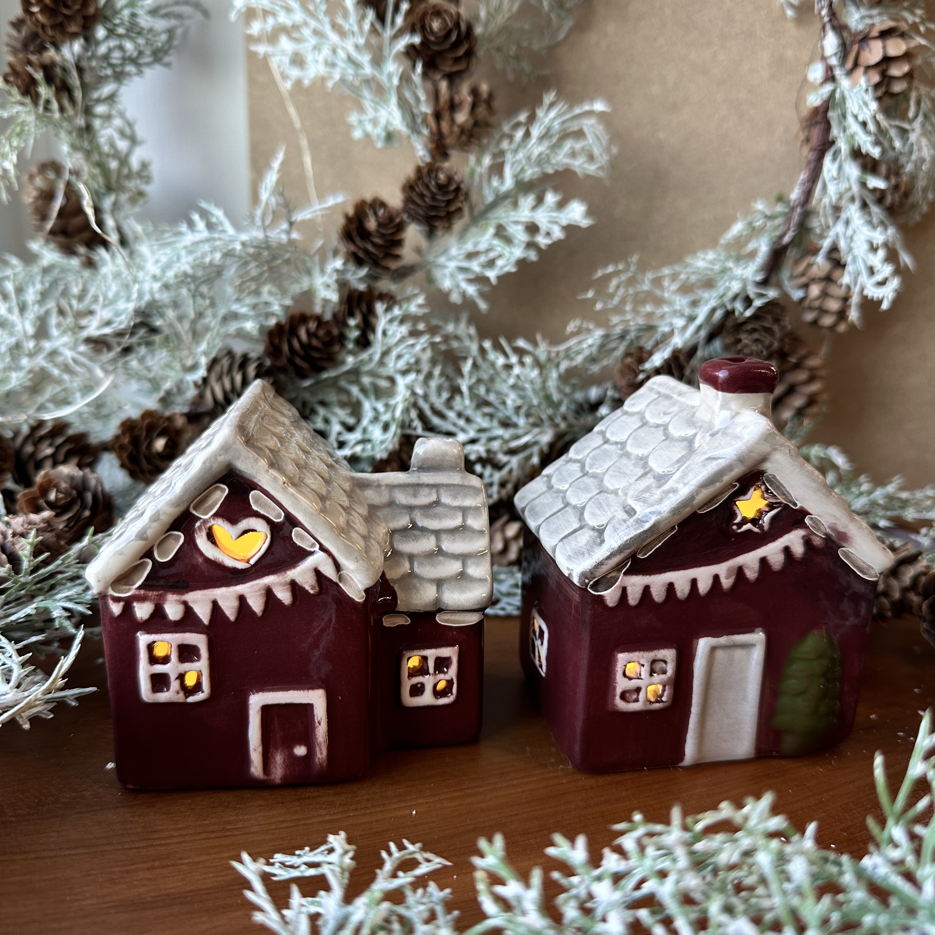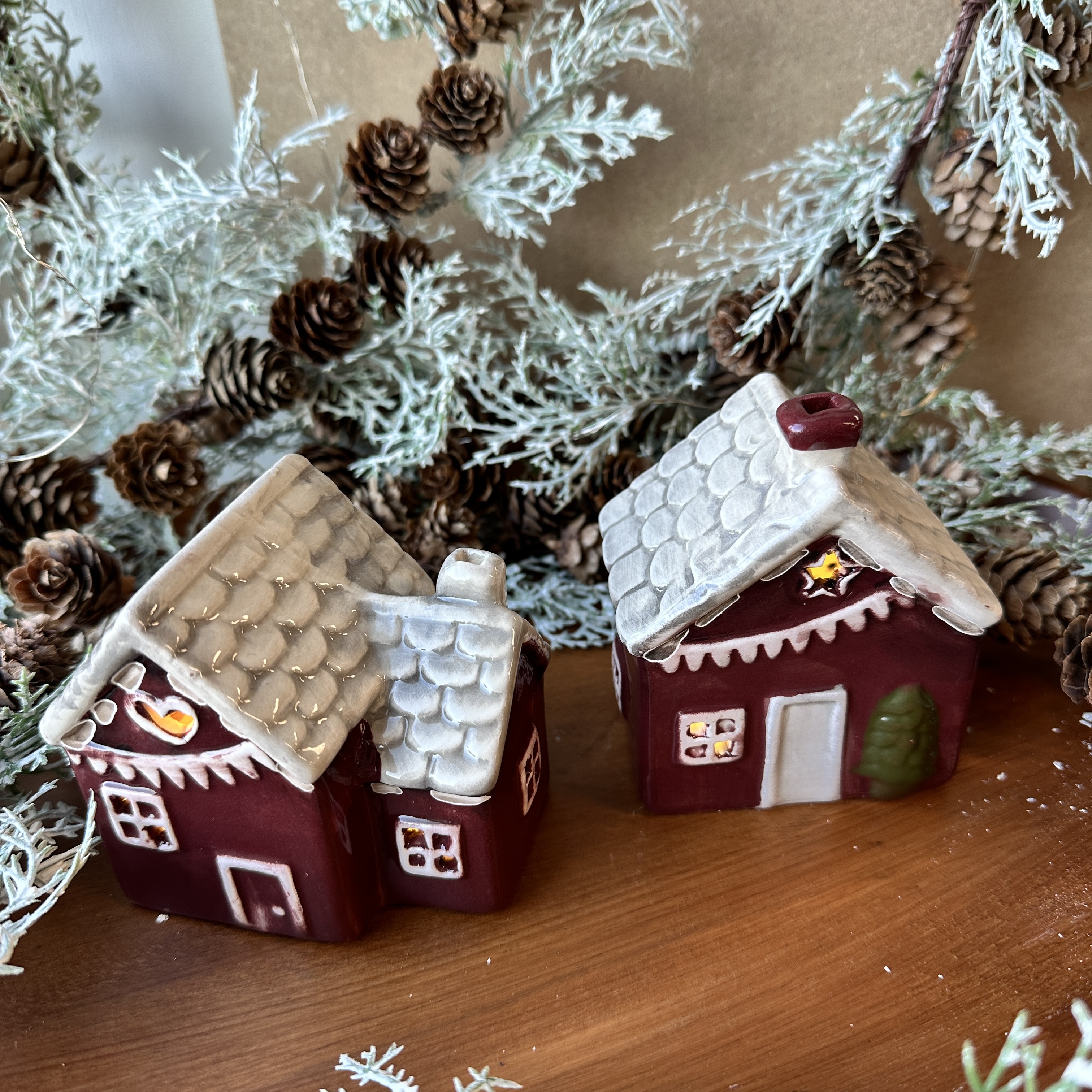 • 1 x Hus til fyrfadslys H 8,4 cm Keramik