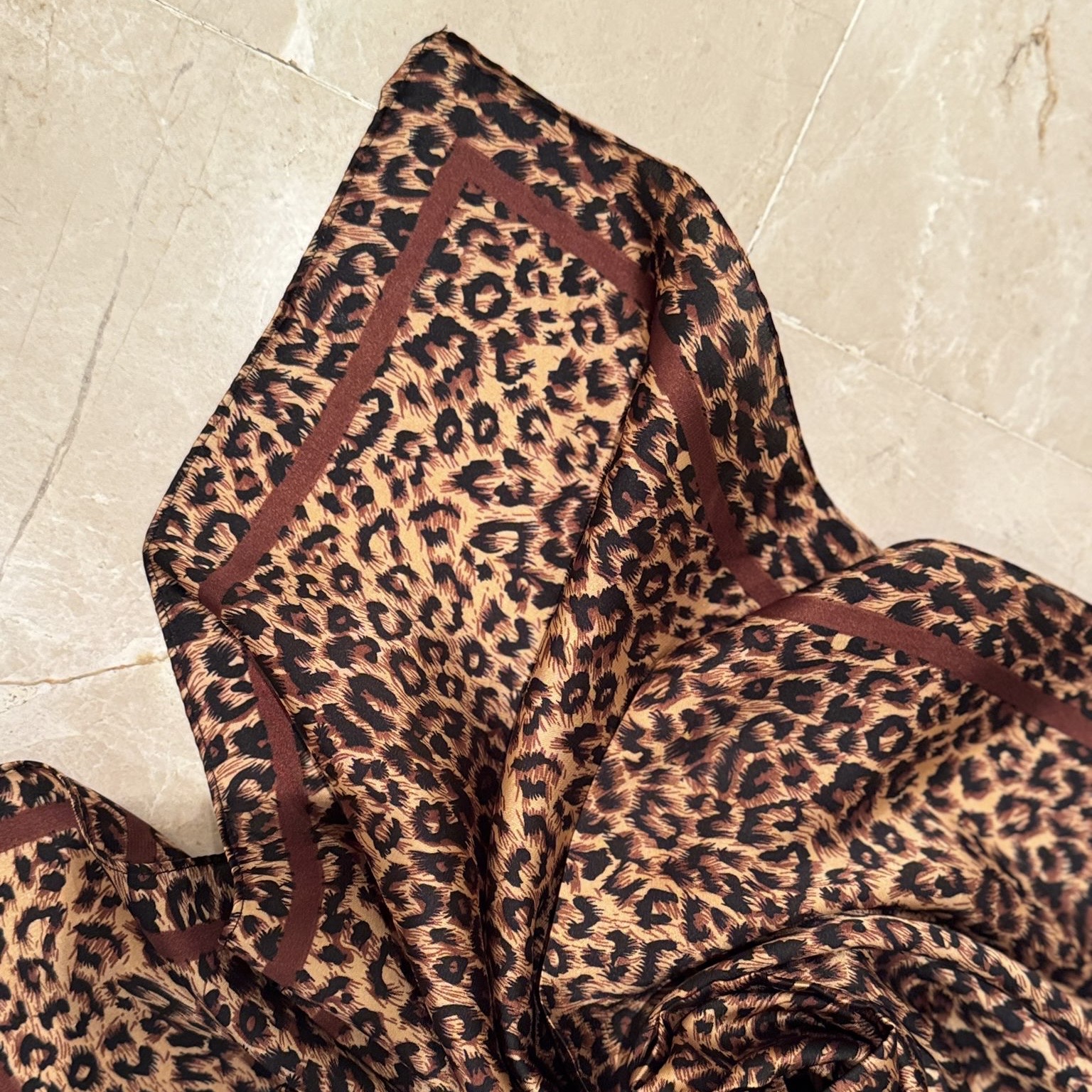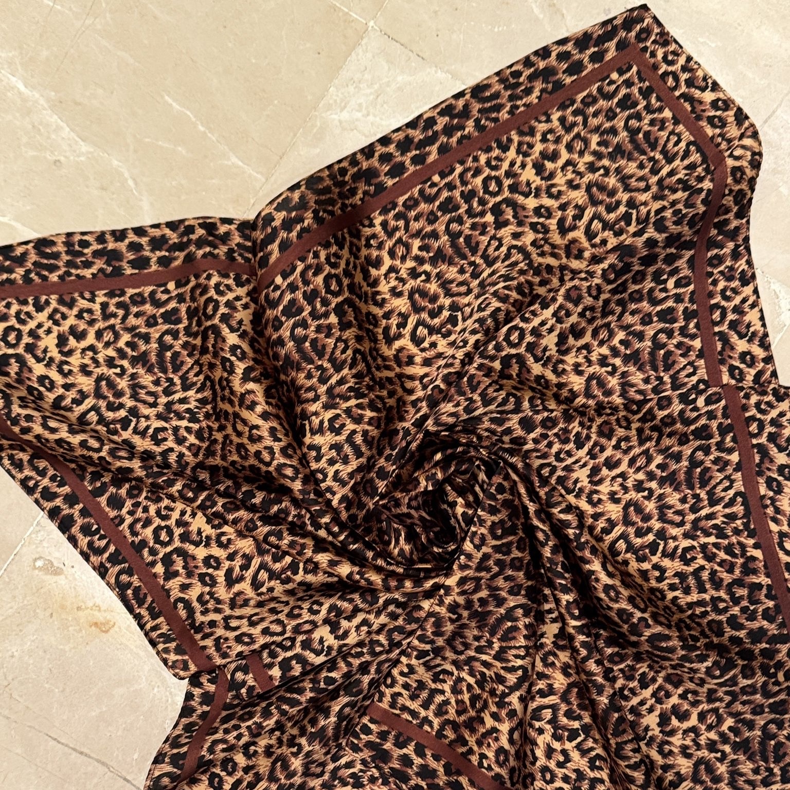 Kvadratisk tørklæde i brun leo