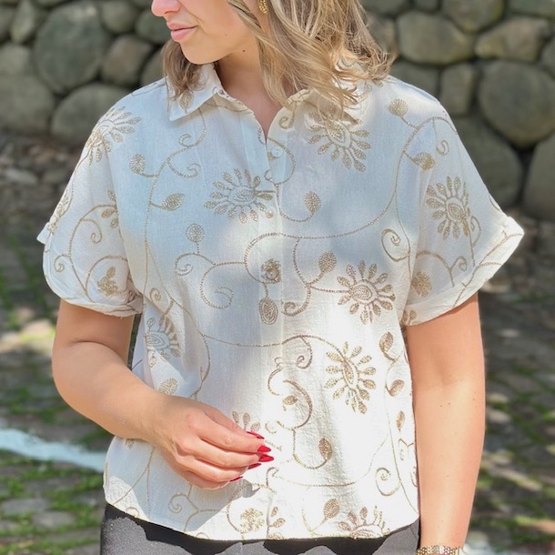 Kortærmet skjorte med broderi CHOKO str. S-L