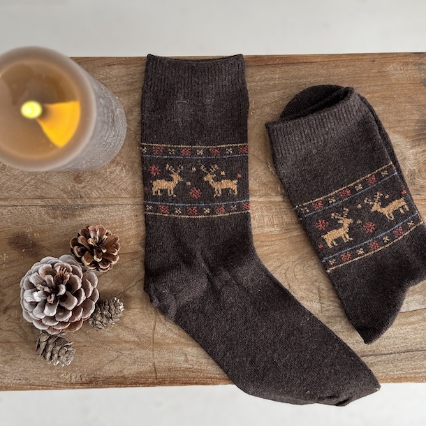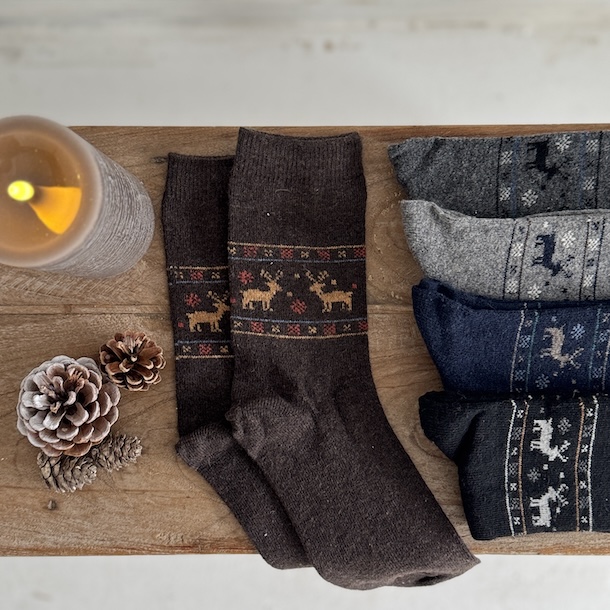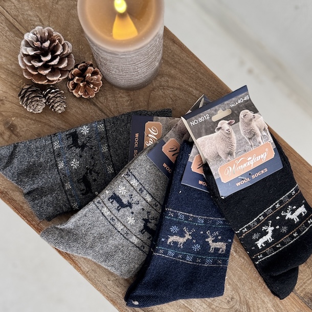 Disse skønne strømper til mænd er med rensdyr og fås i fem forskellige farver.