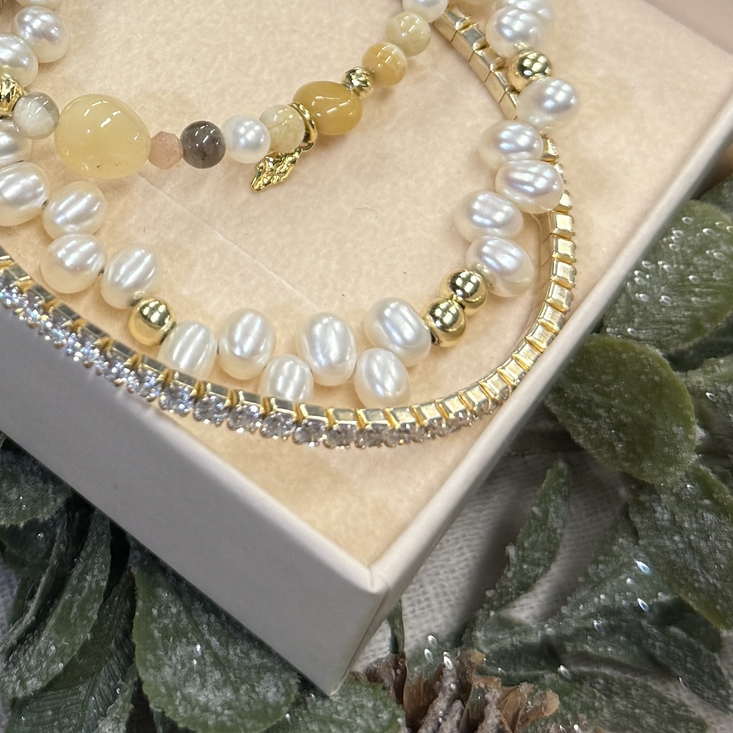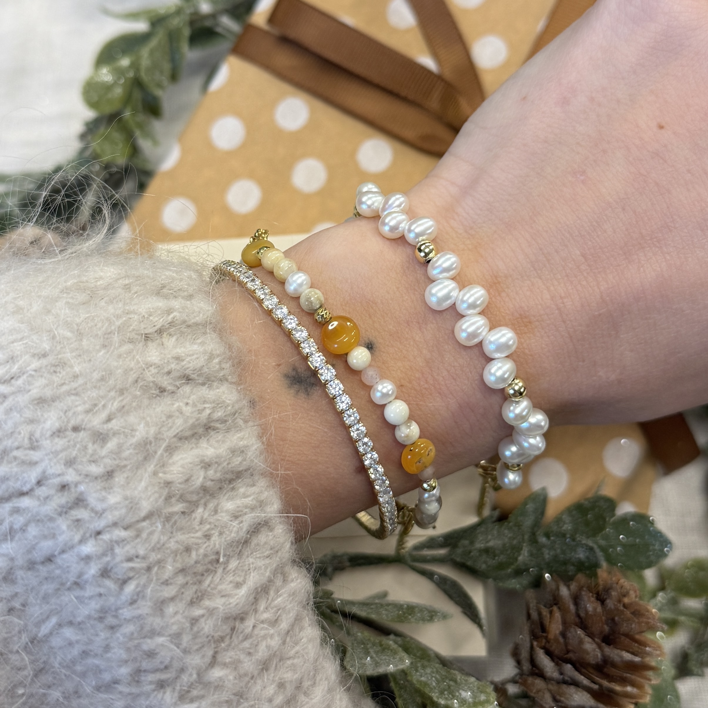 • 1 x Armbånd LUNELLA PEARL Armbånd forgyldt sølv