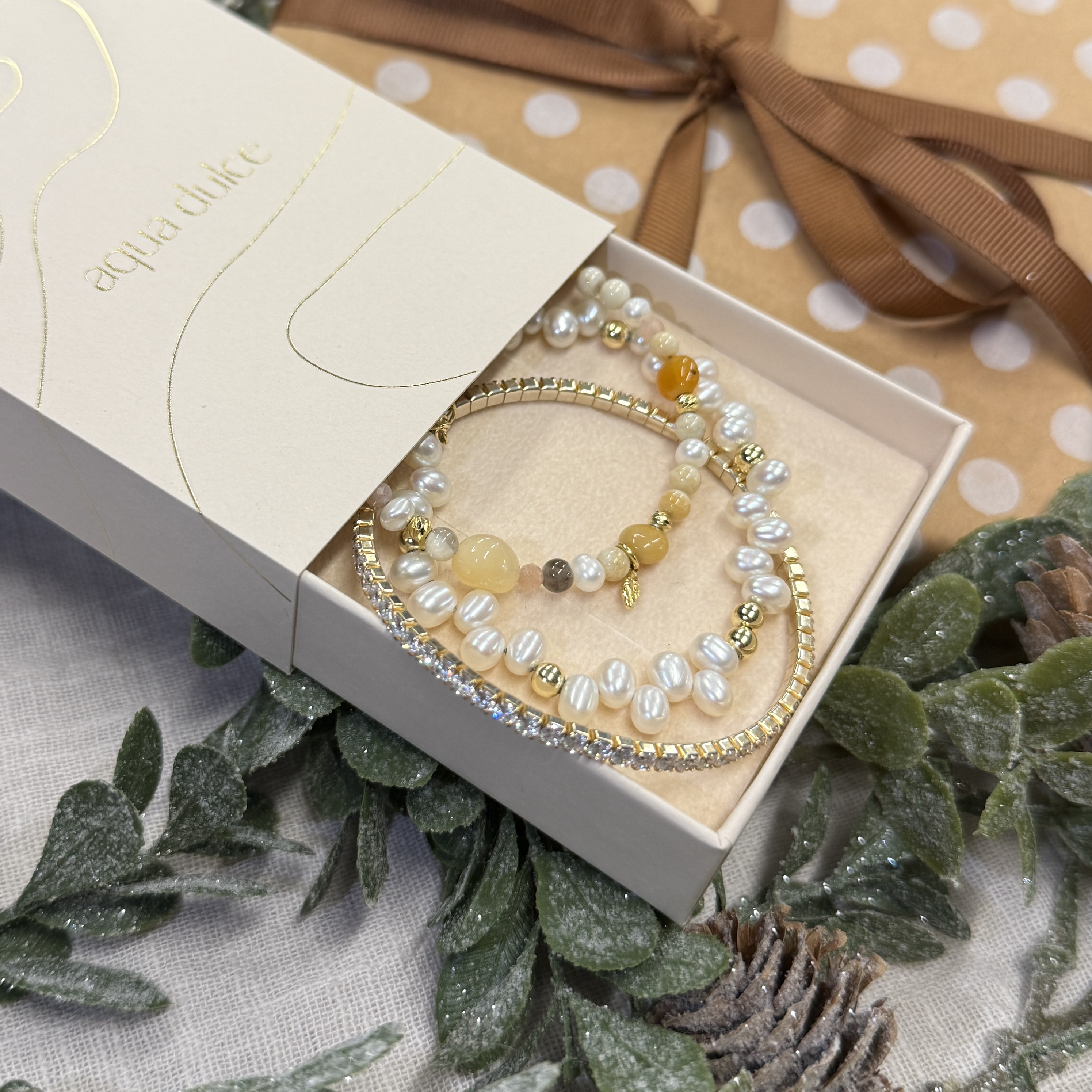 • 1 x Armbånd GOLDEN m. perler forgyldt sølv