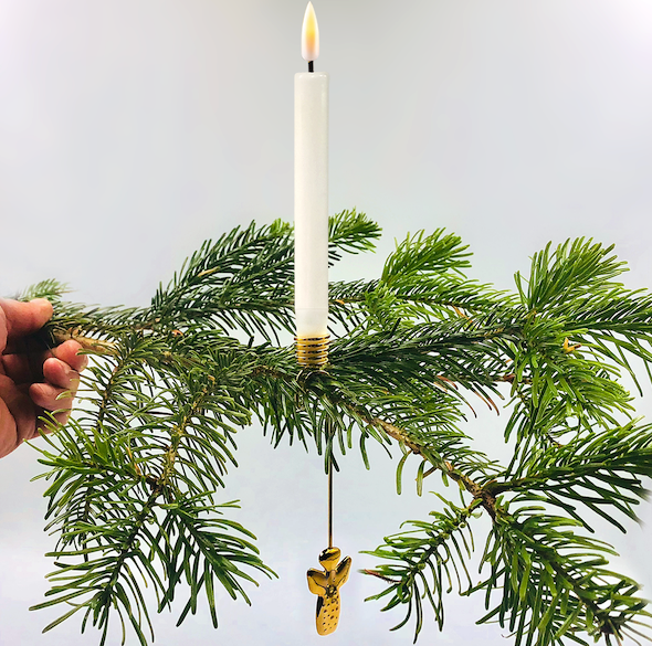 LED juletræslys kan bruges i Georg Jensens lysholg og der medfølger også holder så de kan klemmes på grenen.