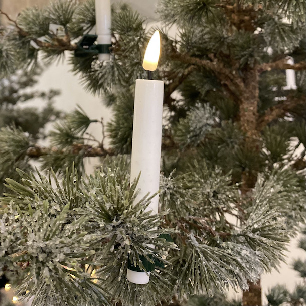 Disse juletræslys er dyppet i ægte stearin og med en lidt resin i toppen ved vægen. Det får disse juletræslys til at se meget naturtro ud.