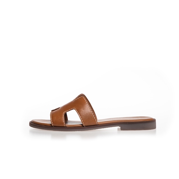 En klassisk slip on sandal i det blødeste skind. Det er en pæn sandal der på én og samme tid er klassisk og spot on på trenden dene sommer. Med denne sandal får du stil, komfort og en sandal du kan bruge til alle anledninger. Både en tur på indkøb, en fødselsdag og på arbejde. Denne i den uundværlige cognac farve til sommer fødder.