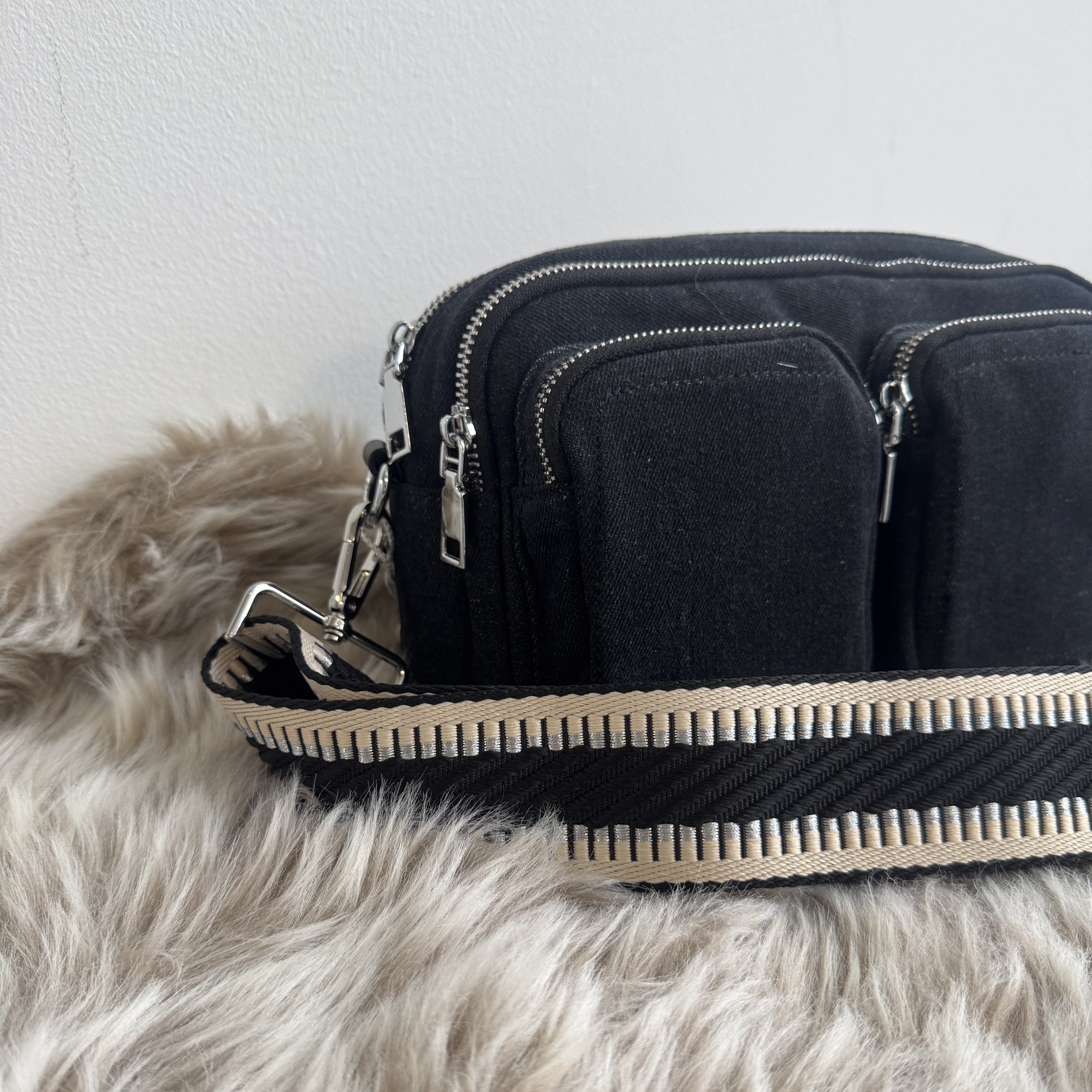Remmen er behagelig at gå med og kan justeres i længden. så de både kan bruges som en  skulderrem og crossoverrem.