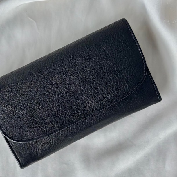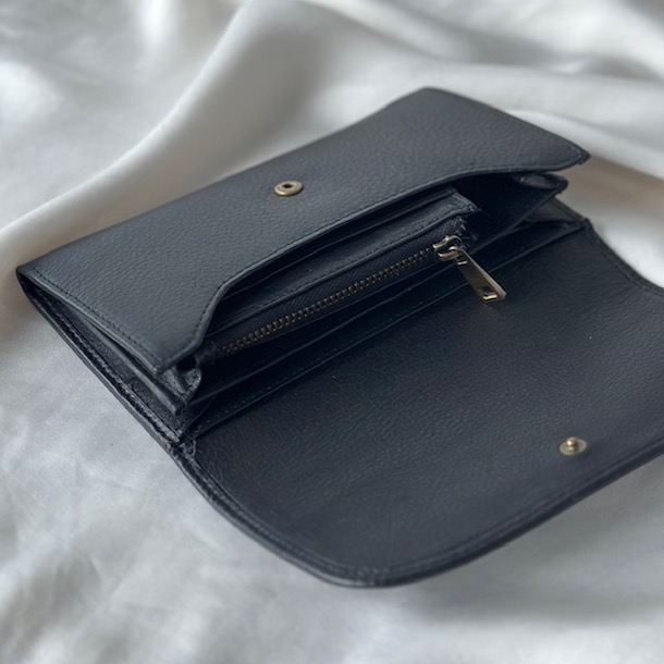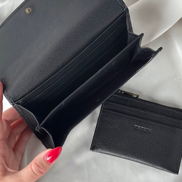 En rigtig lækker pung med klap med kortholder i sort skind.