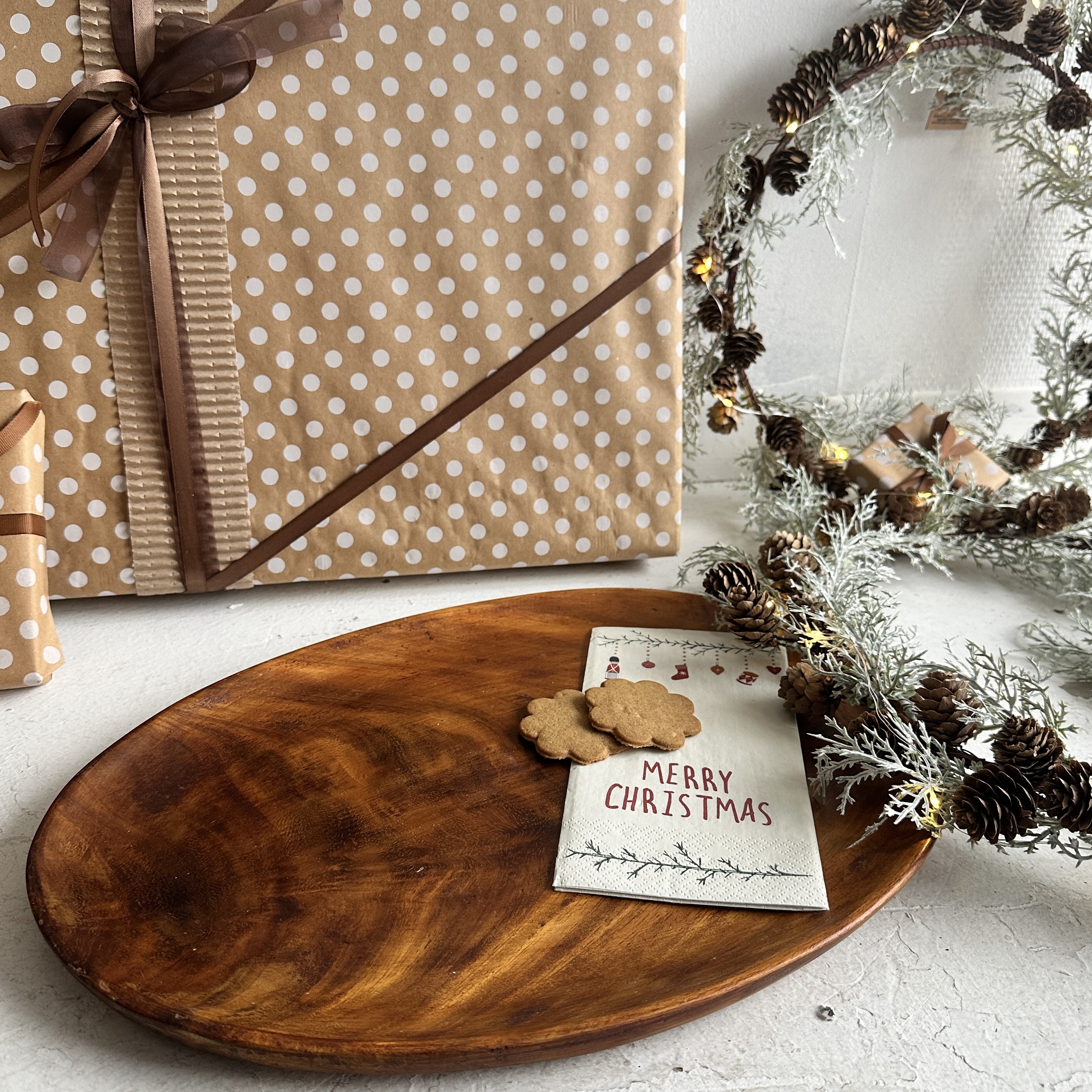 Denne fine fad i akacietræ er perfekt som en deko fad med blomster bloklys og/eller lysestager.