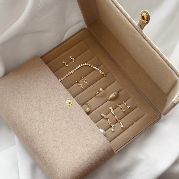 Rigtig fin smykkeskrin med plads til mange smykker.