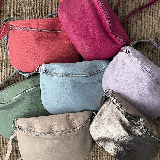 Bæltetaske i lækker struktur skind i mange flotte farver.