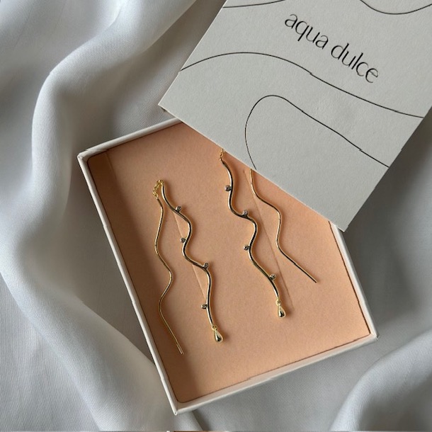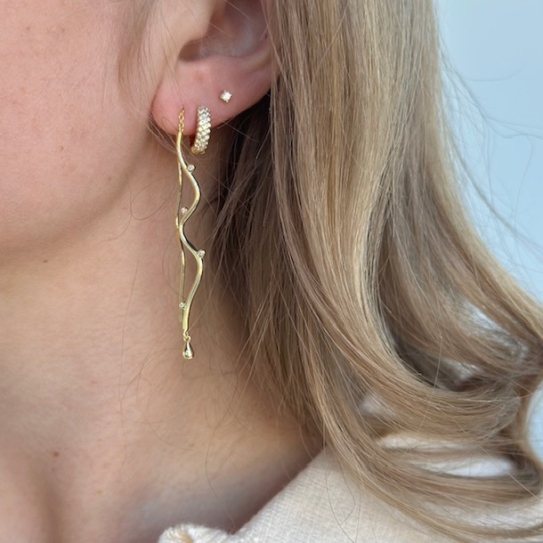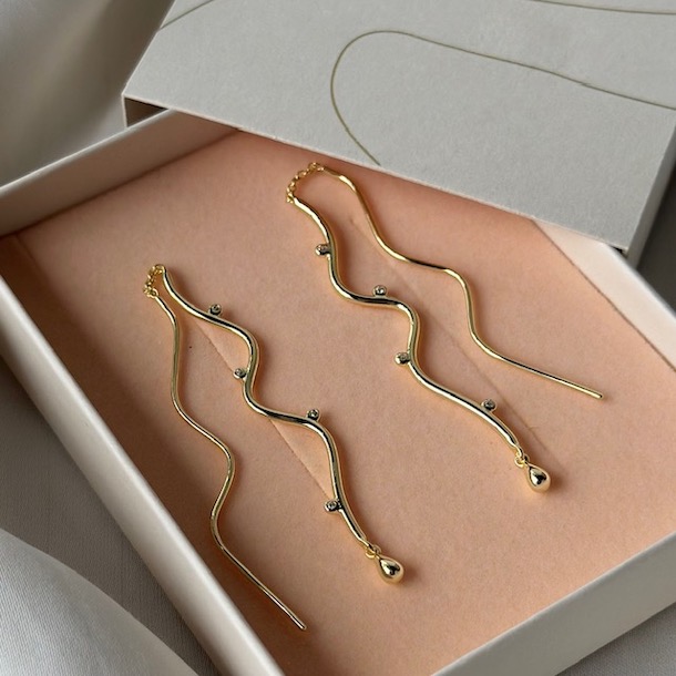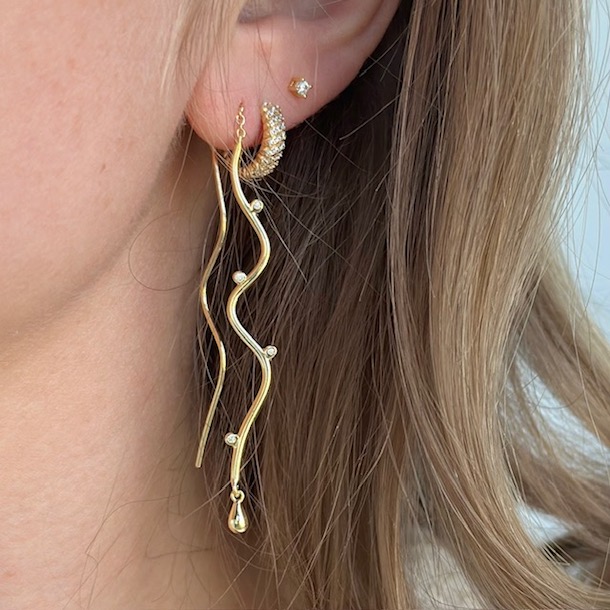 Disse øretråde er en del af WAVY kollektionen - en serie af smykker i smukke bølgede og organiske designs dekoreret af delikate små klare zirkonia.