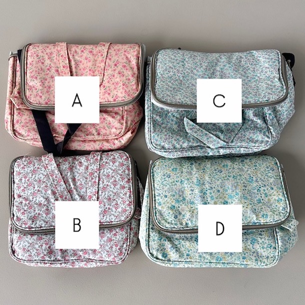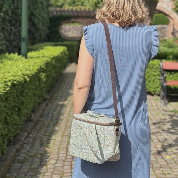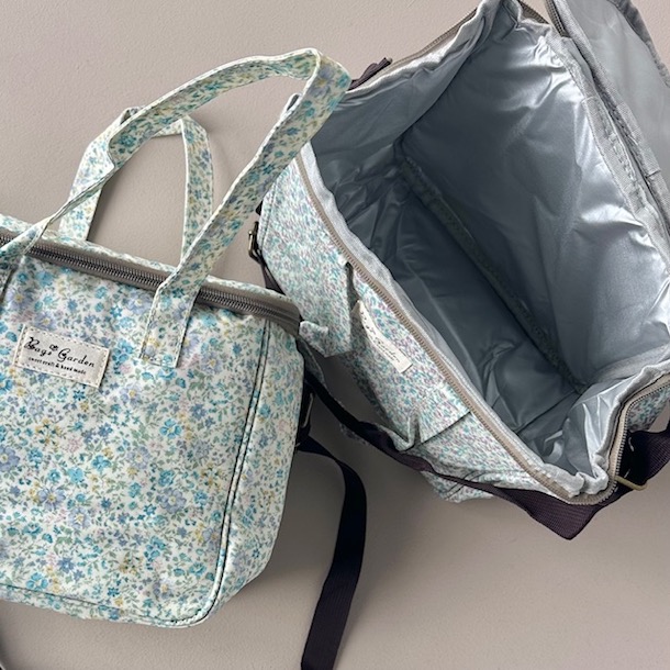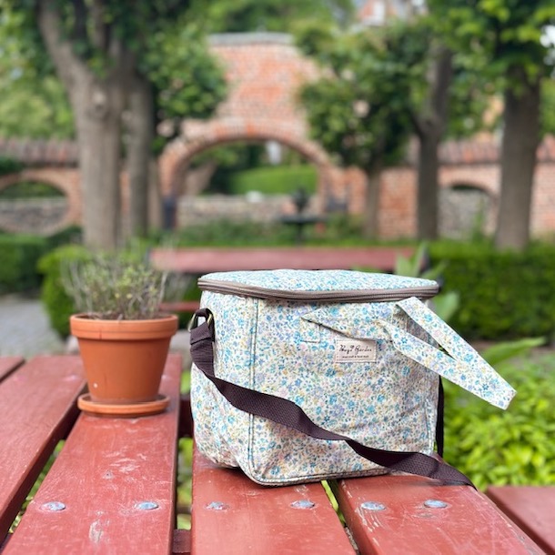 Denne fine køletaske har et stort rum, to hanke og en lang aftagelig rem. Køletasken fås i fire forskellige blomsterprint.