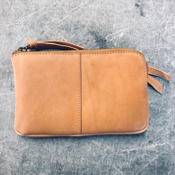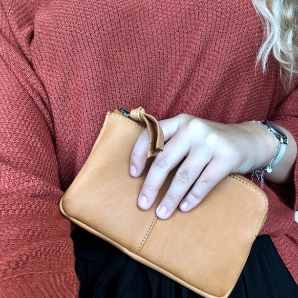 Lækker stor pung med plads til mobil i blødt cognac farvet læder