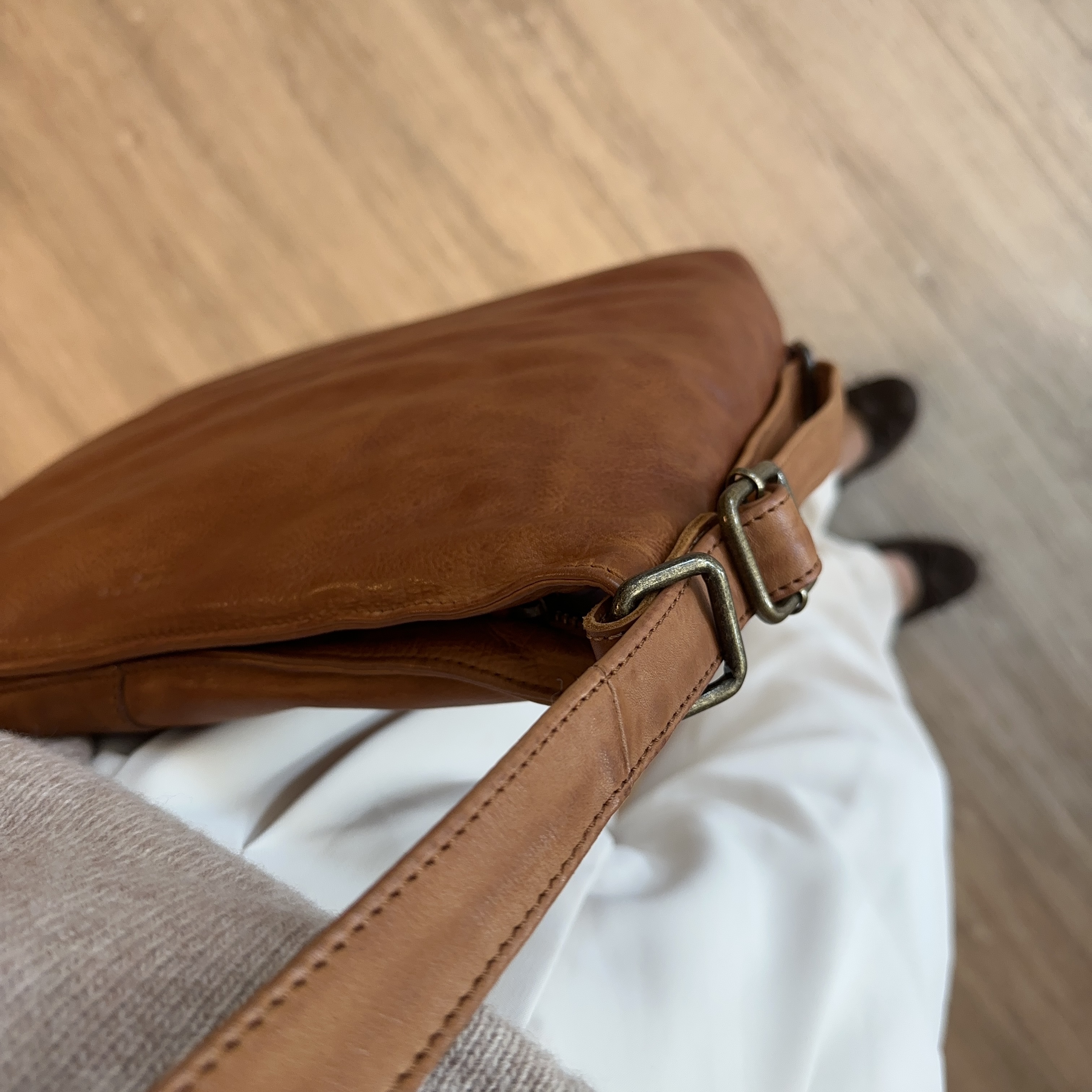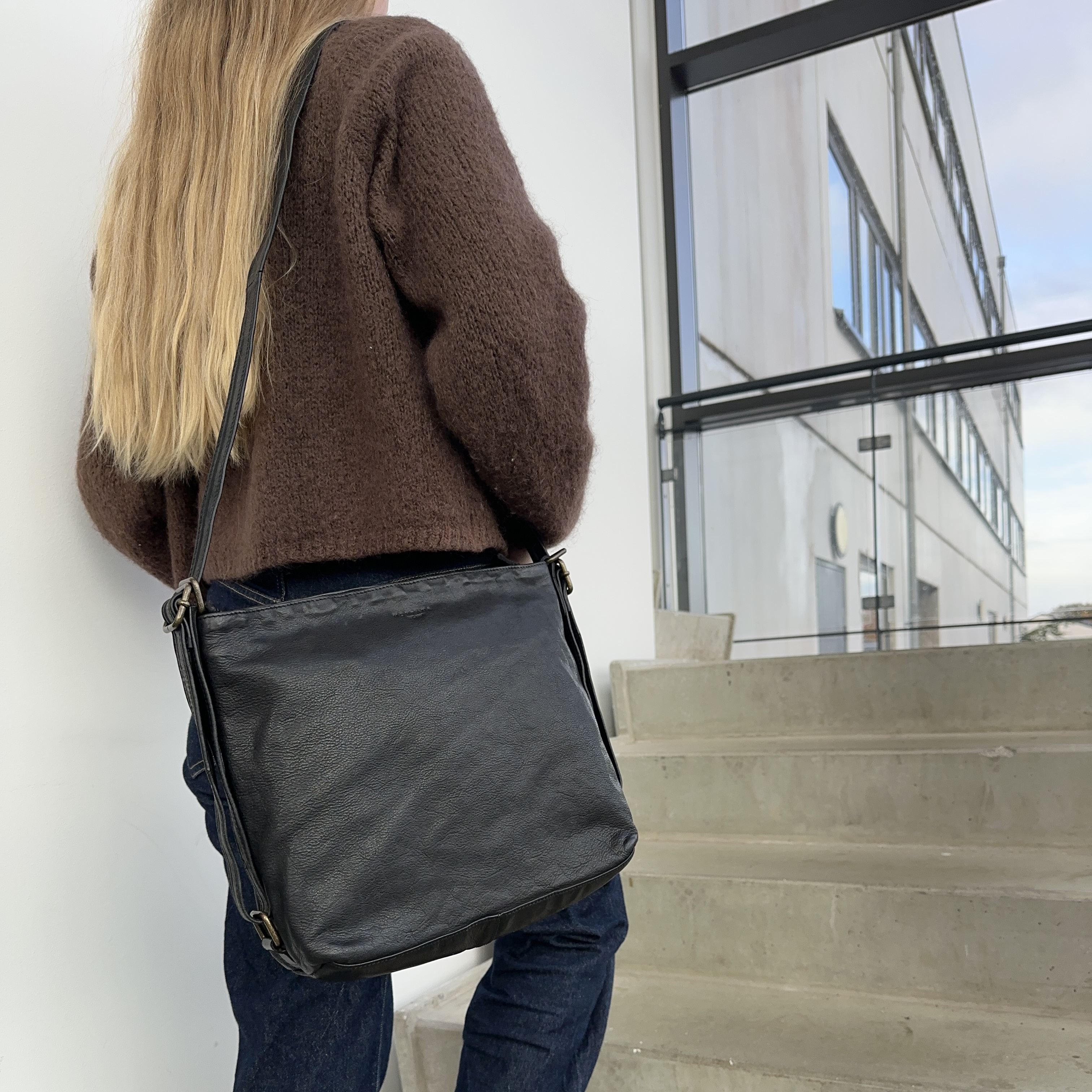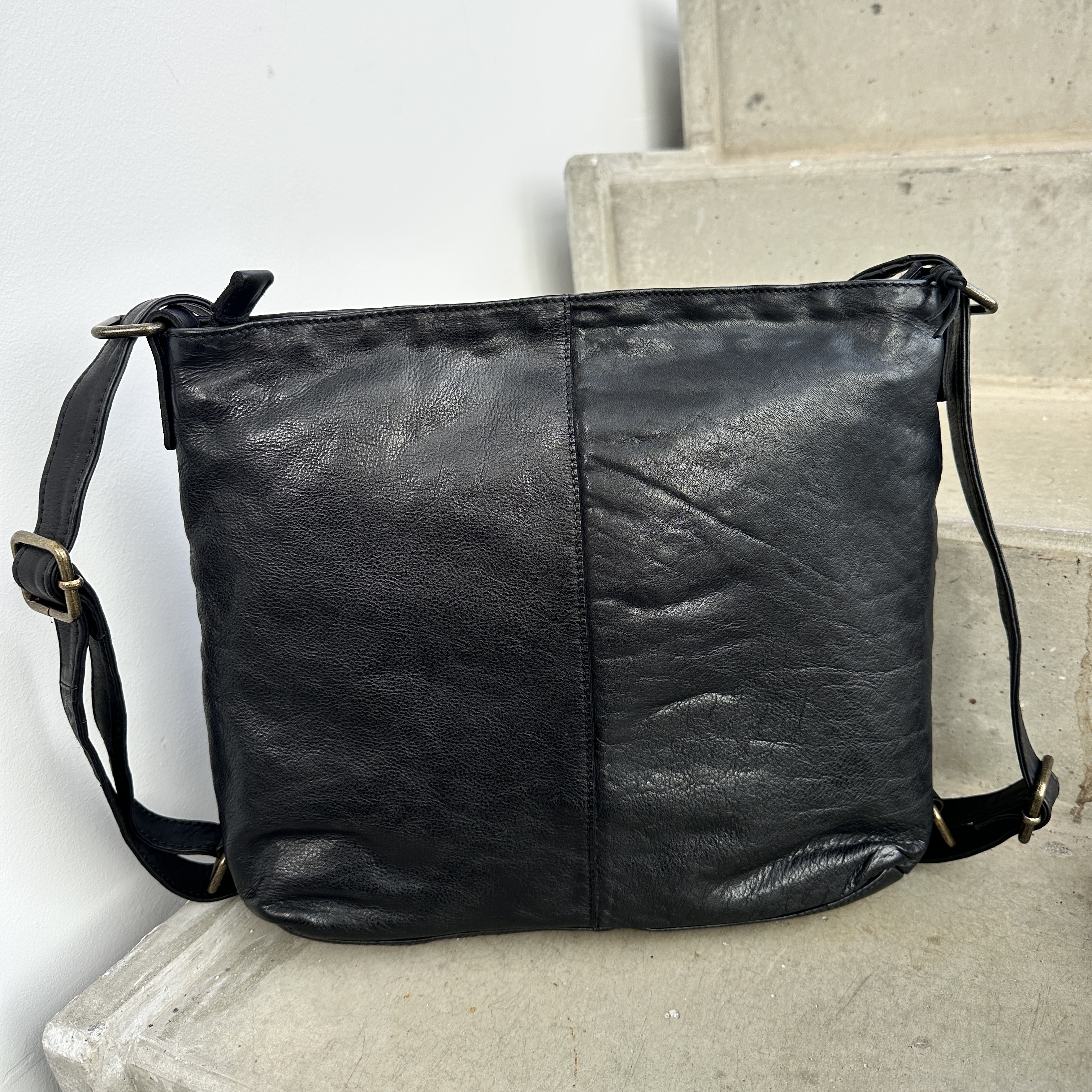 Crossbodyen har en lang justerbar rem, så crossbodyen kan laves om til en rygsæk. Crossbodyen fås i sort, brun og cognac.