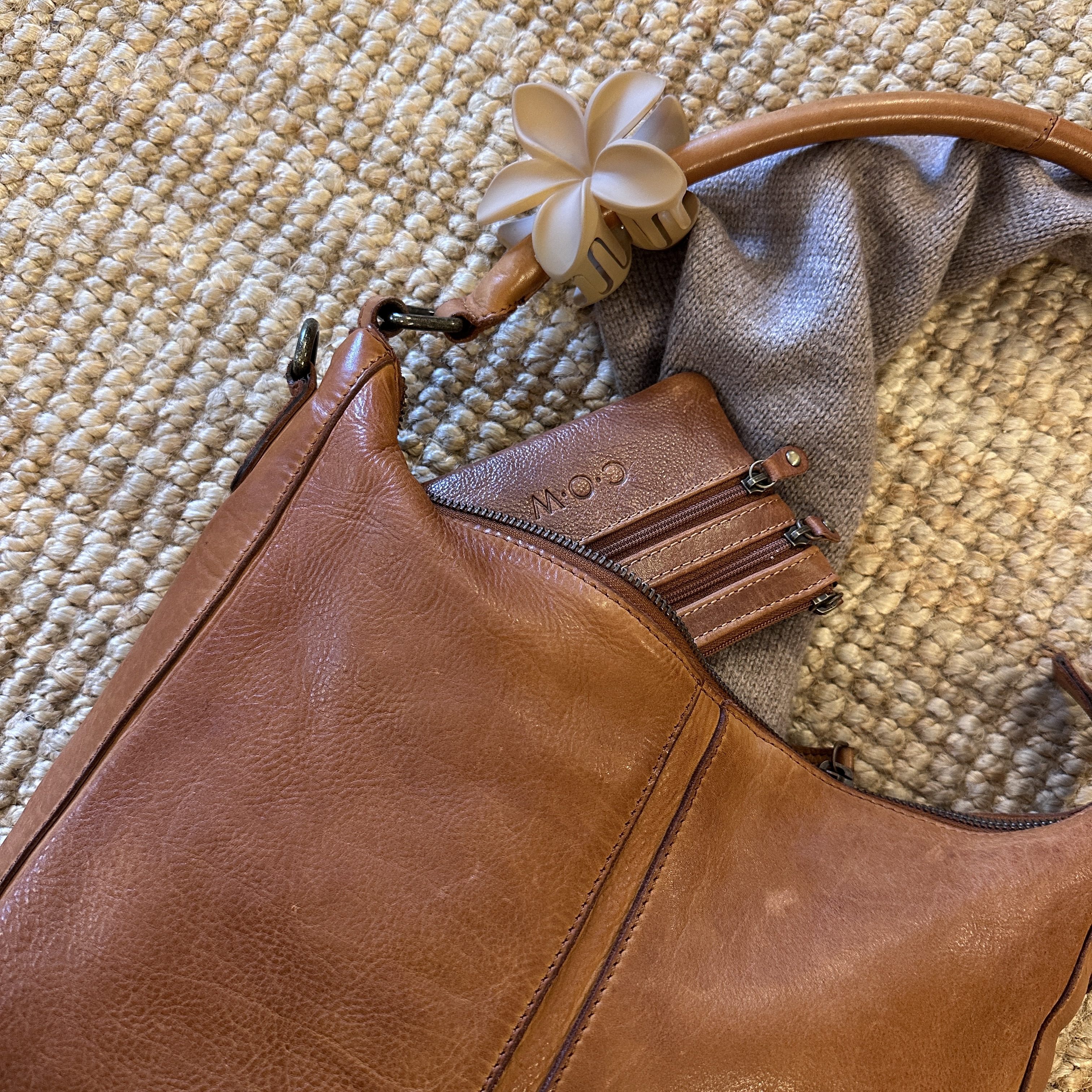 Crossbodyen har både en kort rem og en lang aftagelig justerbar rem og fås i sort, brun og cognac.