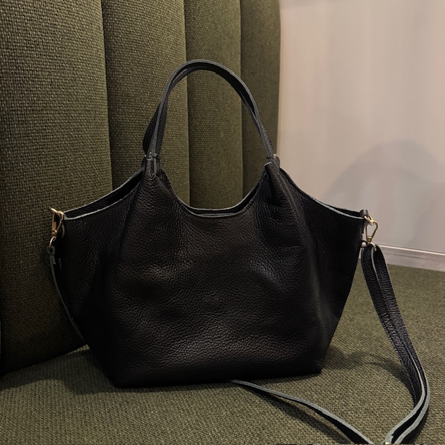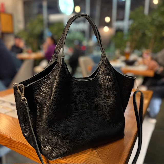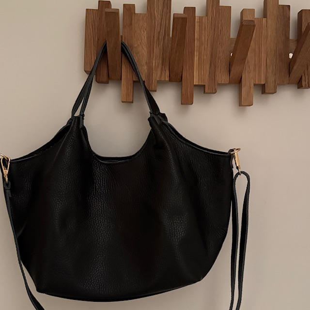 En smuk skindtaske i mellemstørrelse med en aftagelig rem.