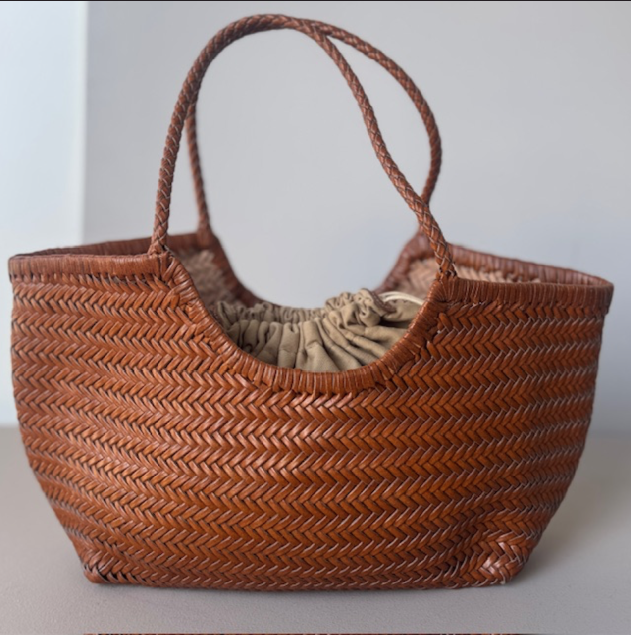 Tasken er en åben tasken hvor man har glæde af det rigtige skind på bagsiden. Indvendig er der en taske-pose der kan snørers sammen og passe ekstra godt på indholdet. Indvendig i posen er der et lynlås rum. Posen er let a tage ud, og man kan sagtens have en flaske vand, en bog mm i tasken ved siden af posen.