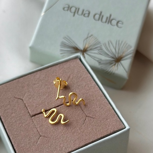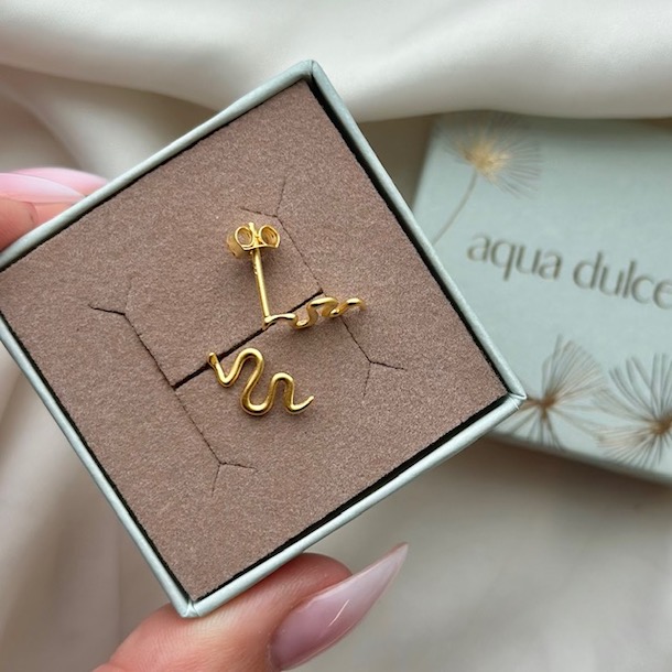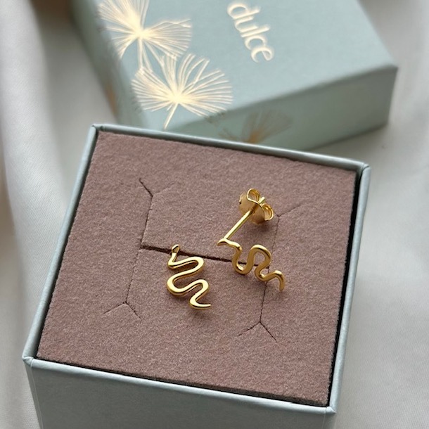 Ørestikker i forgyldt sterling sølv med små sandblæste slanger