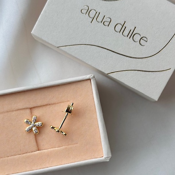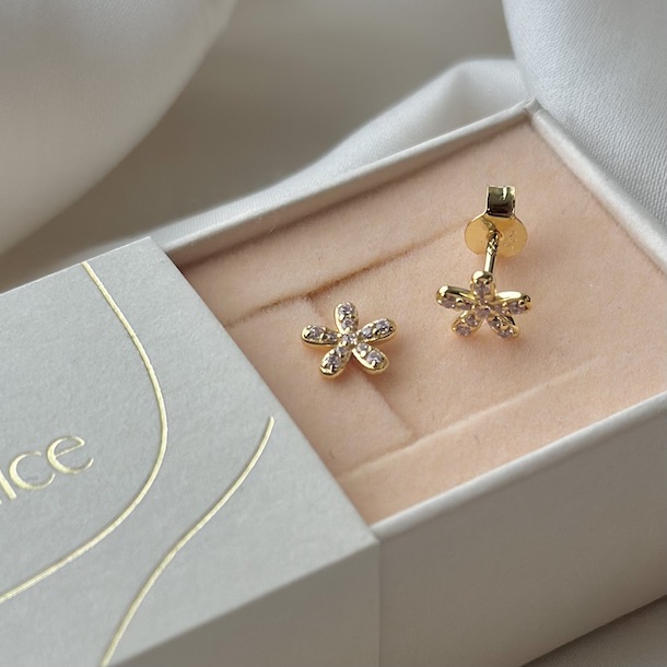 Ørestikker TINY BUTTERFLY Forgyldt Sølv