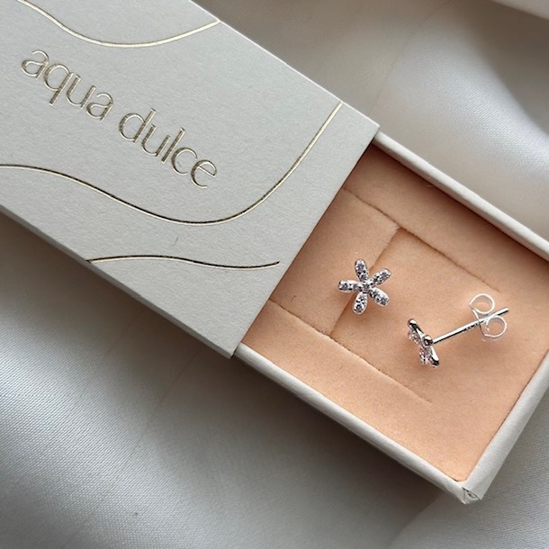Søde sterling sølv ørestikker formet som en blomst, med de fineste rosa 7 lyserøde zirkonia sten.