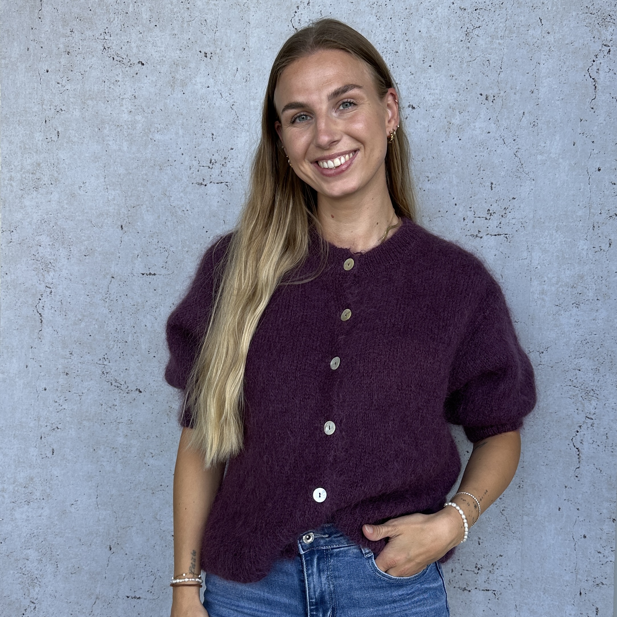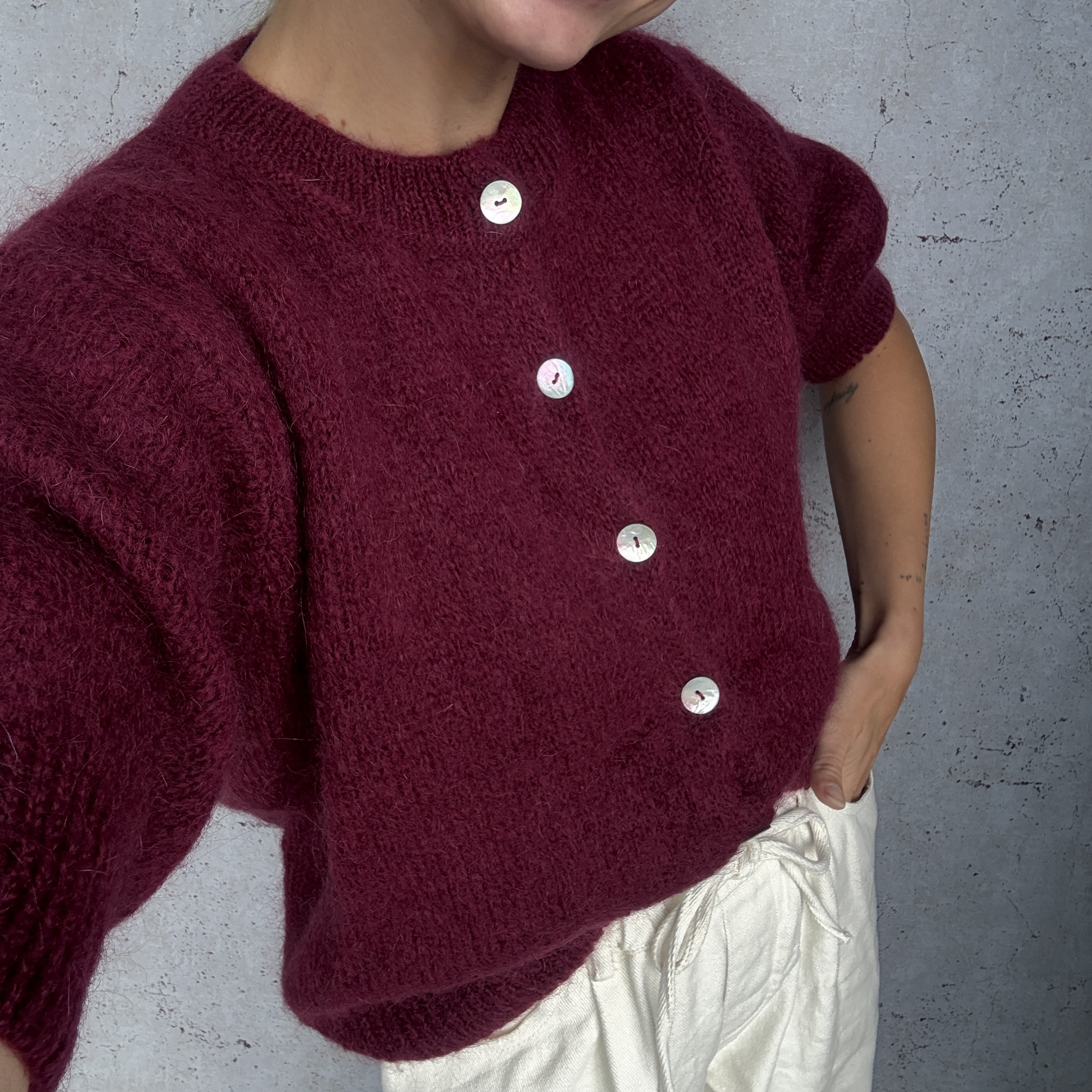 Kortærmet uld cardigan - str 36-42 Mohair & uld miks