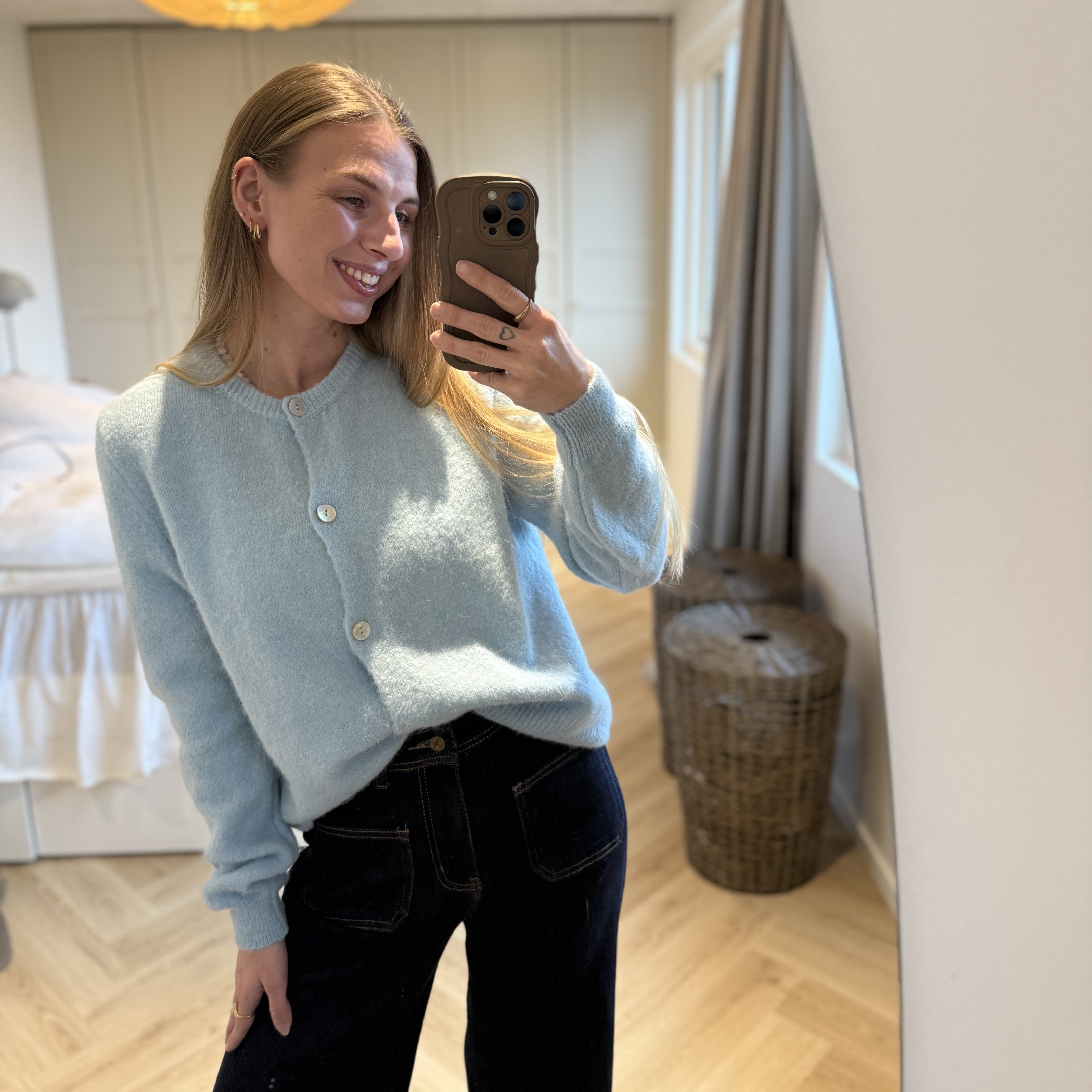 Cardiganen er designet med diskrete perlemorsknapper, som tilfører et subtilt og naturligt glansfuldt strejf. Den lette og ekstra bløde strik omslutter kroppen med komfort og varme uden at føles tung. Et luksuriøst og alsidigt basisitem til garderoben.