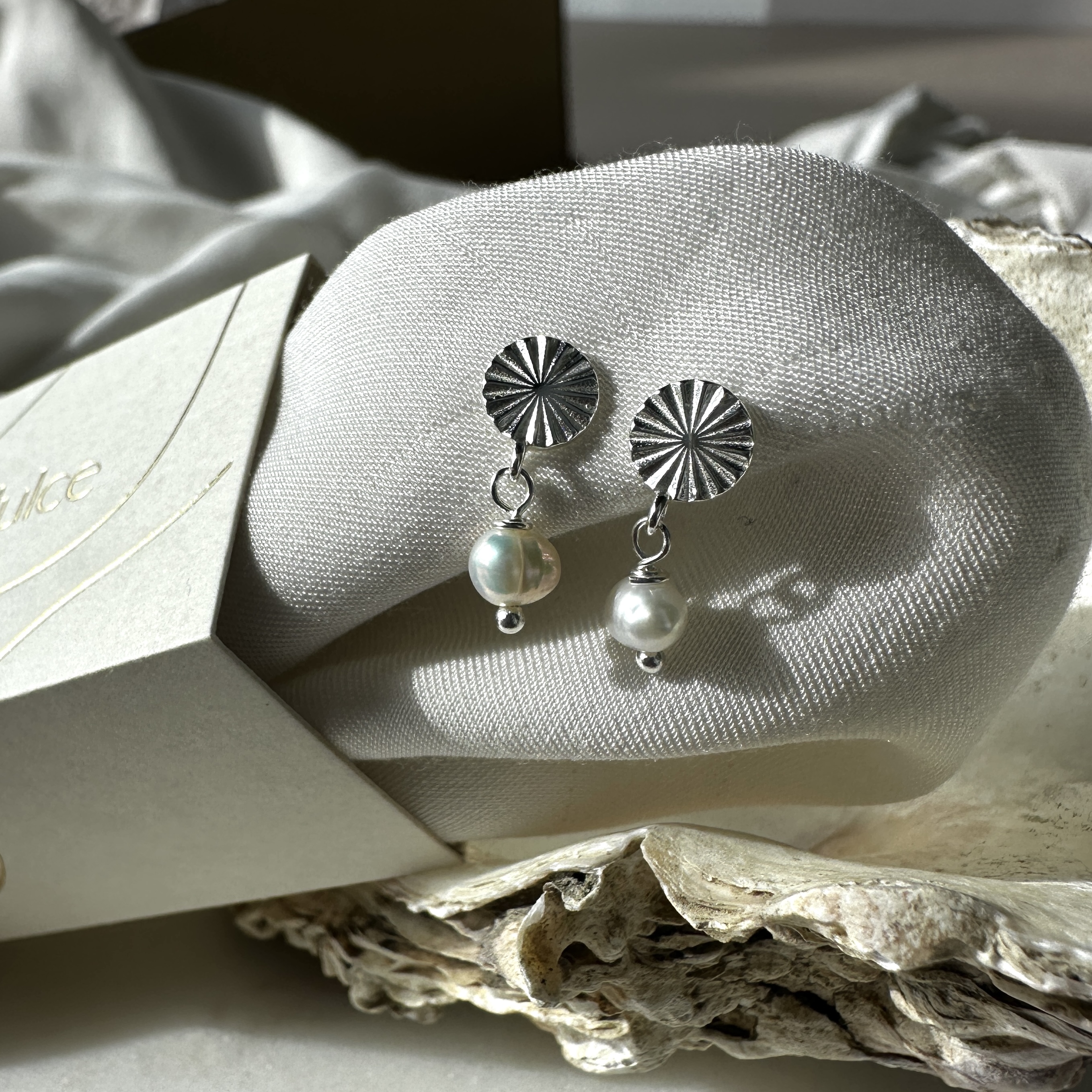 Ørering LINE PEARL Ørestikker sølv 6 / 4 MM.