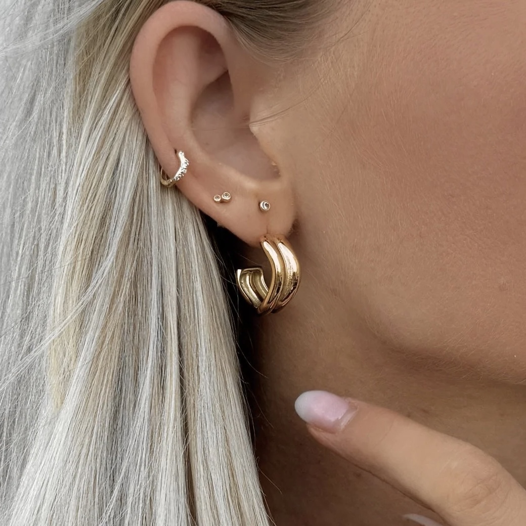Forma er en iøjnefaldende ørering med bløde, afrundede former og et fyldigt udtryk. Designet følger ørets linjer og giver et moderne look uden at virke for tungt.