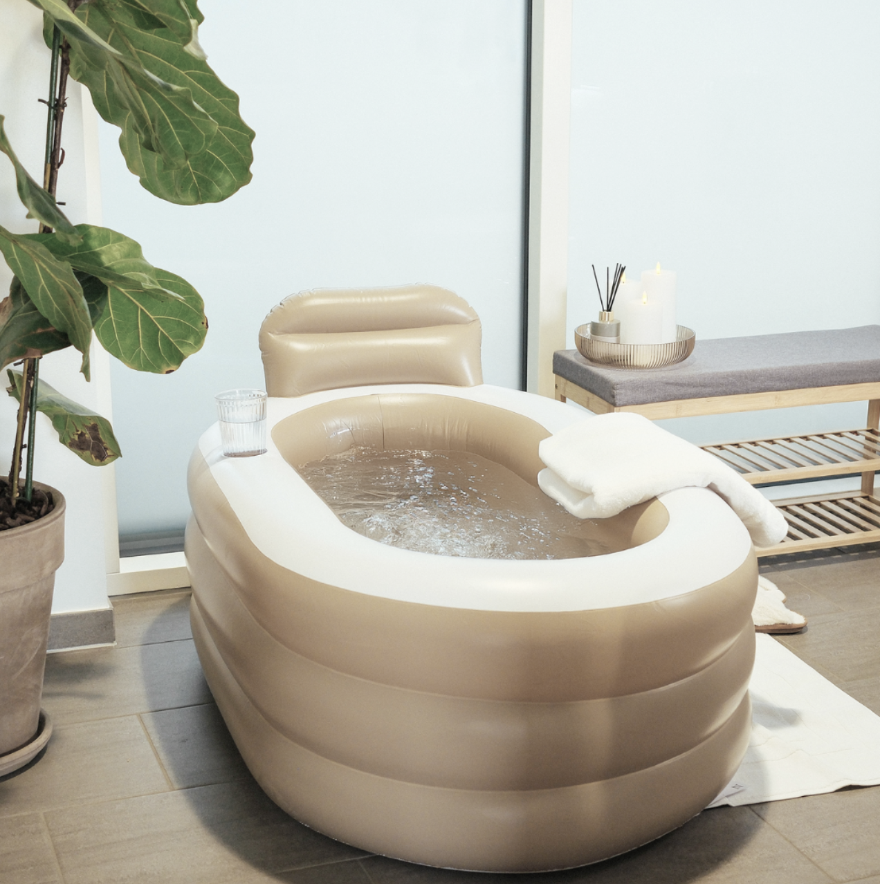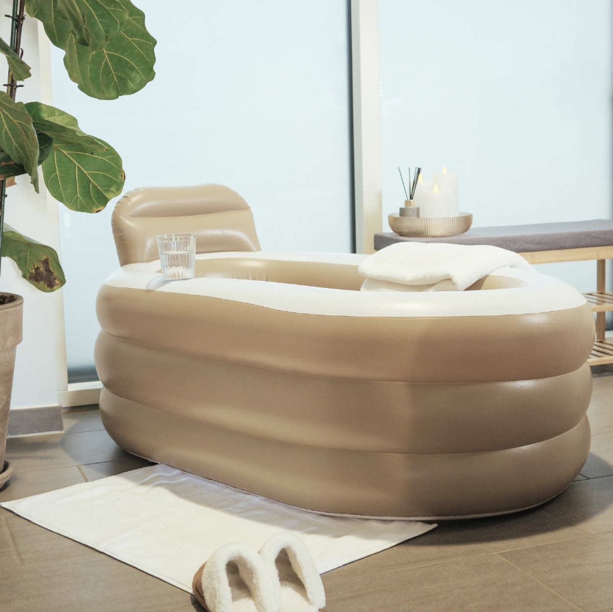 ✨ Oppusteligt badekar i brun-nuance - Wellness derhjemme! 🛁