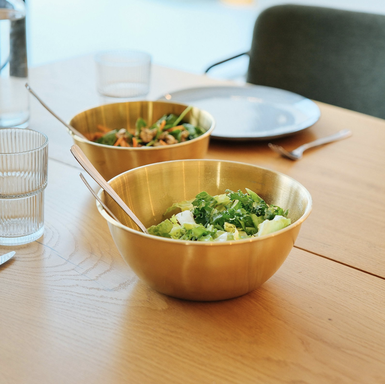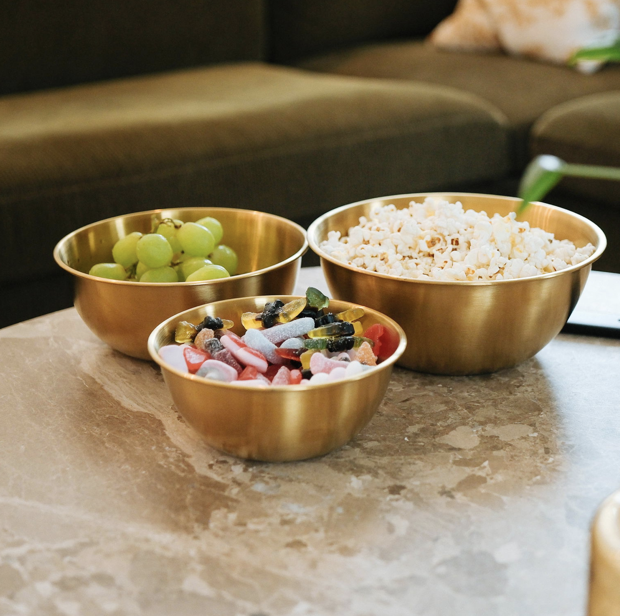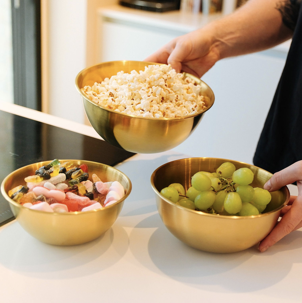 Opgrader dit køkken og din borddækning med dette smukke messingfarvede skålsæt i 3 størrelser. Skålene kombinerer et stilrent, nordisk udtryk med praktisk funktionalitet og er perfekte til alt fra salater og snacks til servering og madforberedelse 🥗🍿