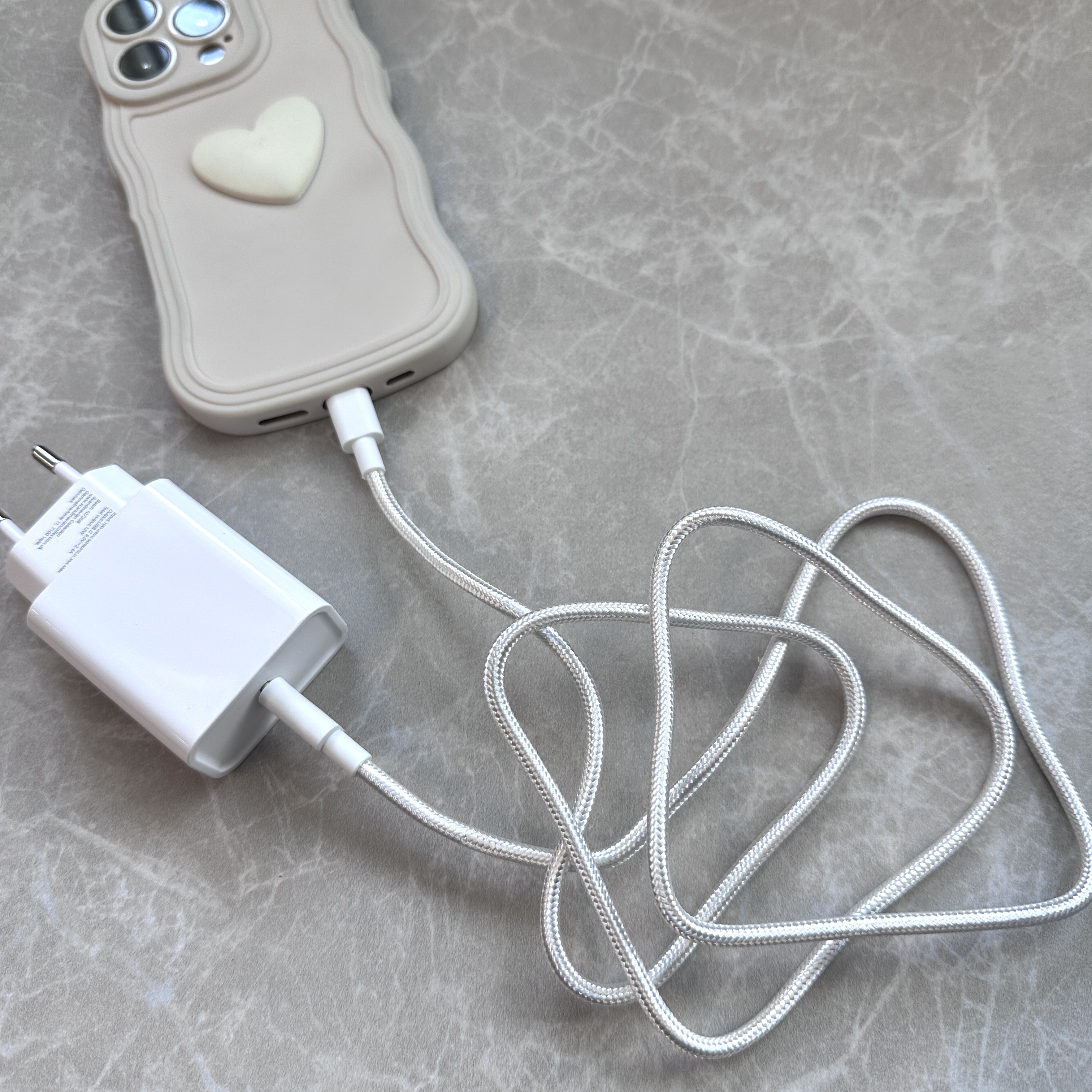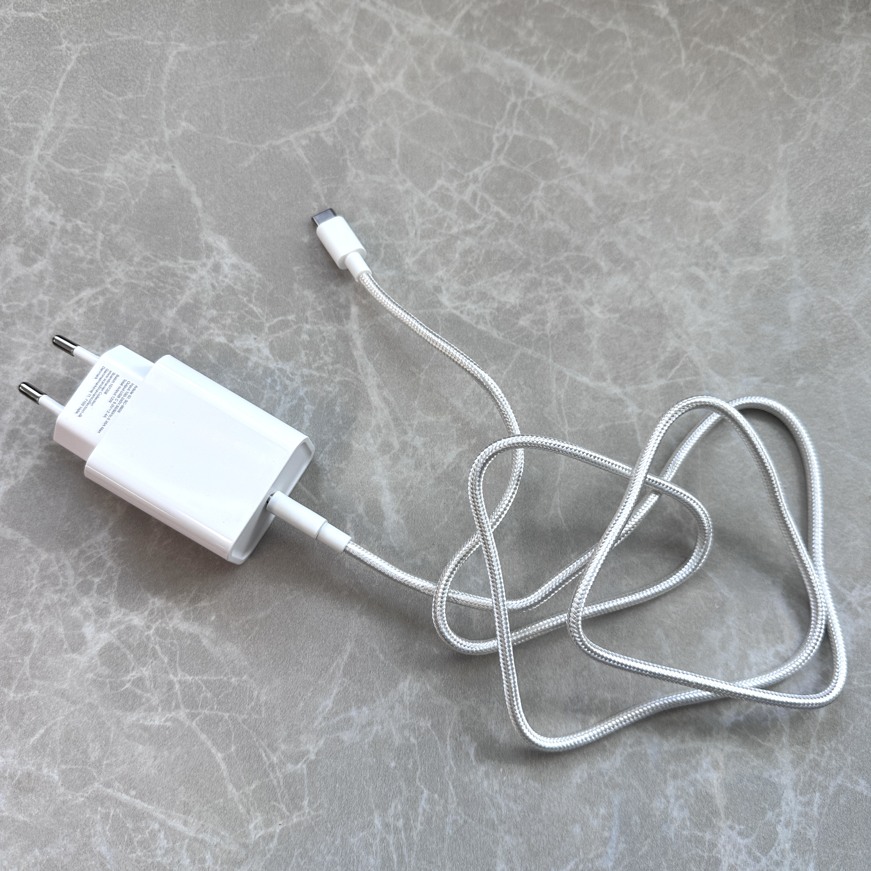 Adapter med usb C. hvid og med 1 meter nylon kabel.