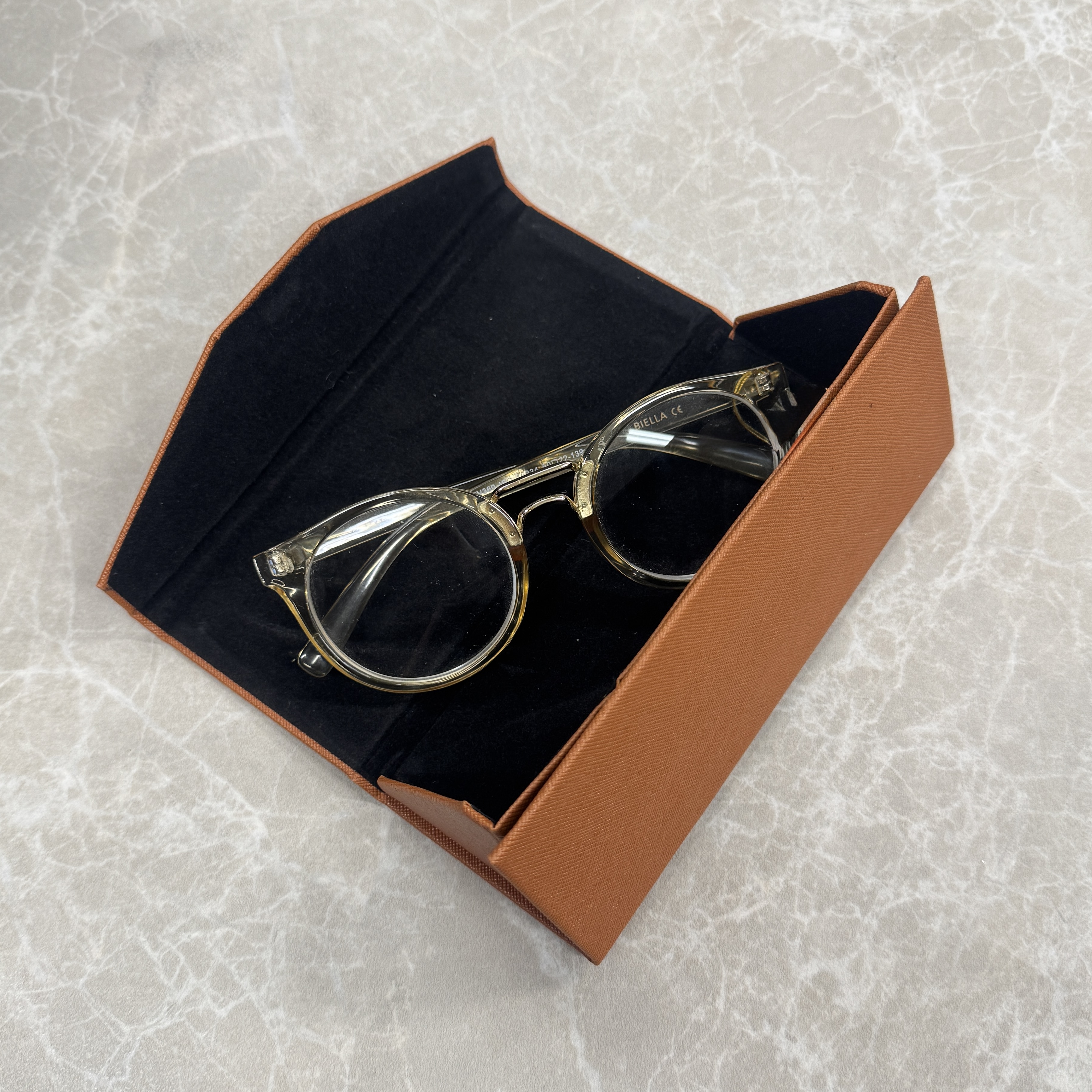 Disse foldbare brilleetuier er virkelig smarte, da de ikke fylder noget, hvis du ikke har brillerne i. Når du folder dem ud og kommer brillerne i, bliver de trekantet.