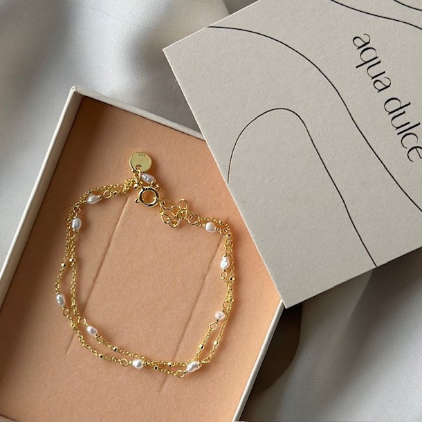 Ørestik med kæde DARA perle forgyldt sterling sølv