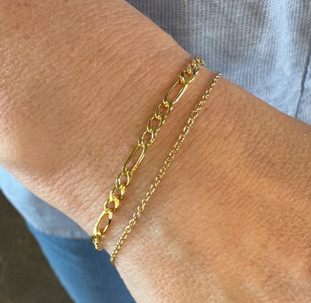 Andie - armbånd i forgyldt sterling sølv med figaro led. 17 + 3 cm.