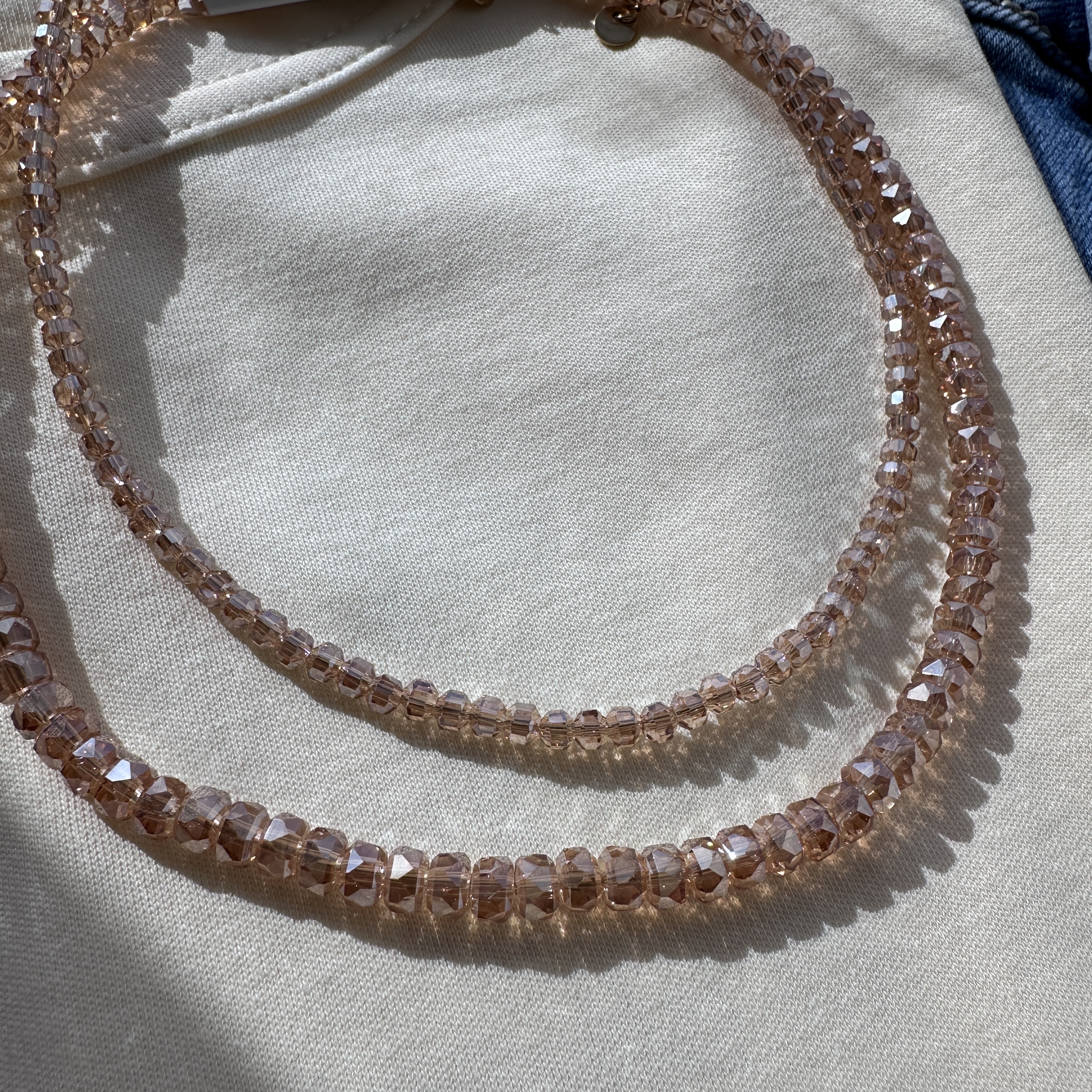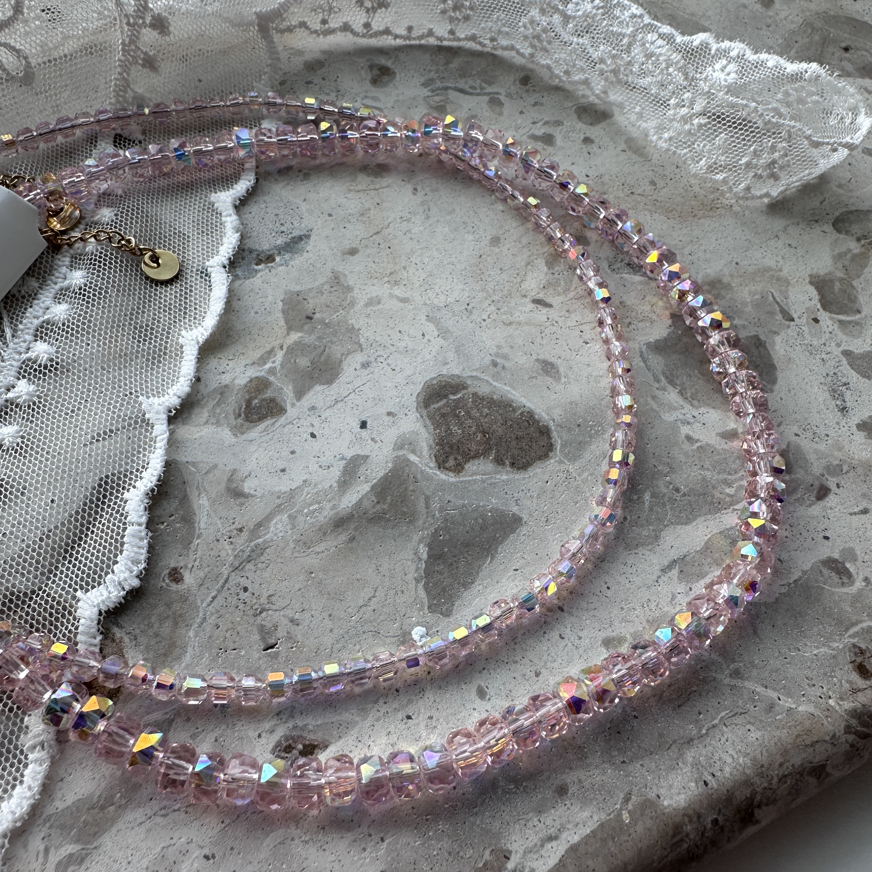 Den smukkeste shiny, glitrende halskæde med perler.