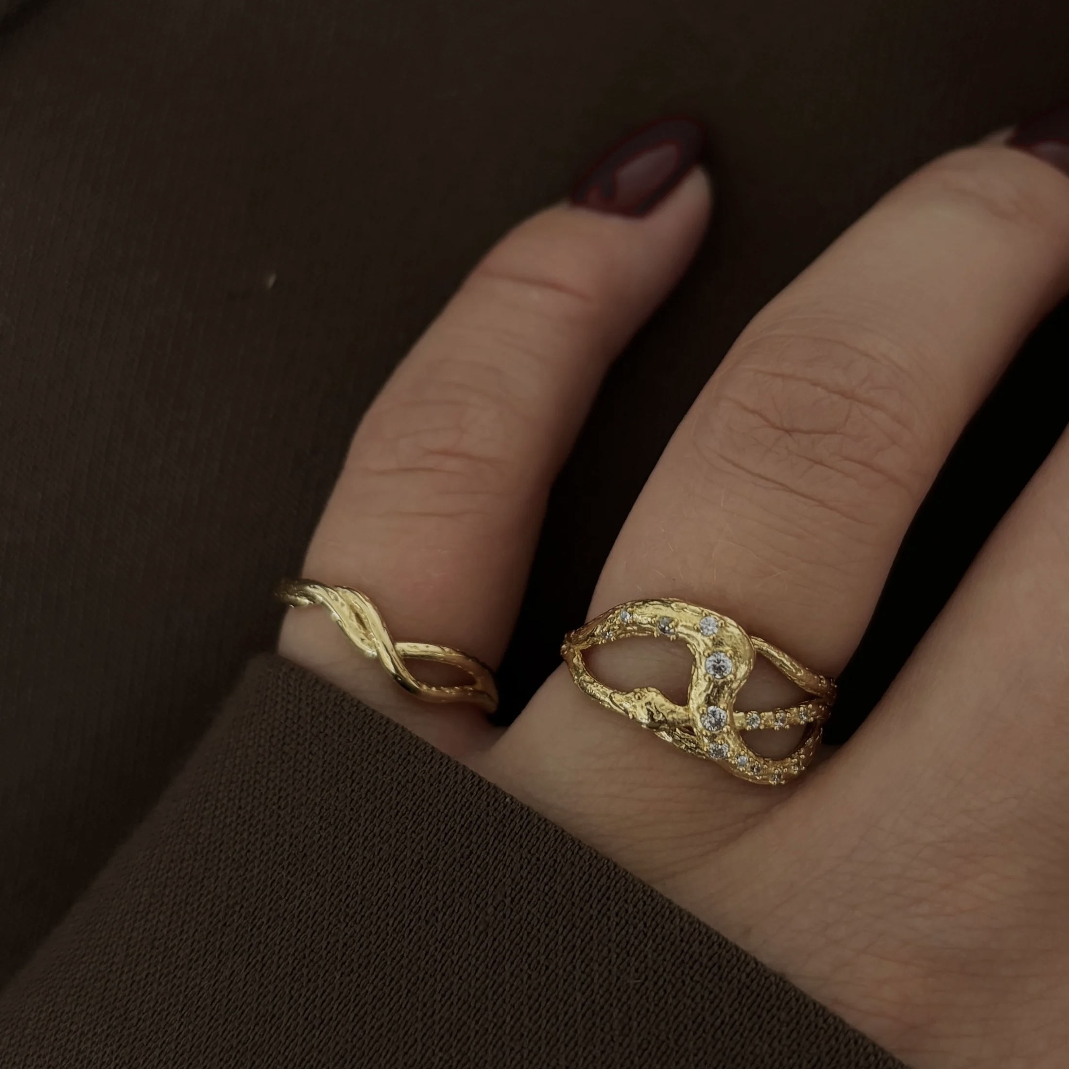 Vores smukke Medusa Ring er et unikt smykke, der kombinerer elegance med et strejf af mystik. Slangen er dekoreret med smukke kubiske zirkoner, som tilføjer en luksuriøs glans til det ellers rå og naturlige design.