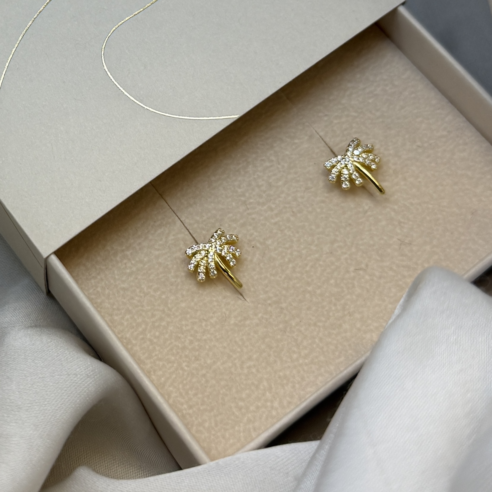 De fineste ørestikker med form af en fin palme, fyldt med små sten.
