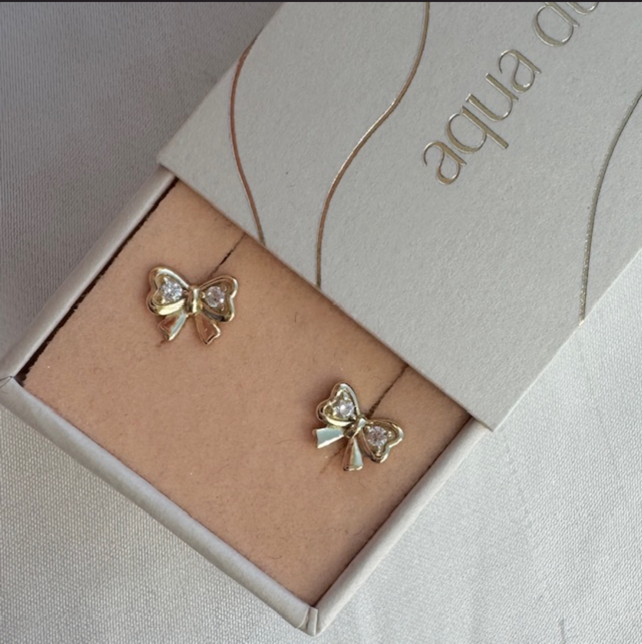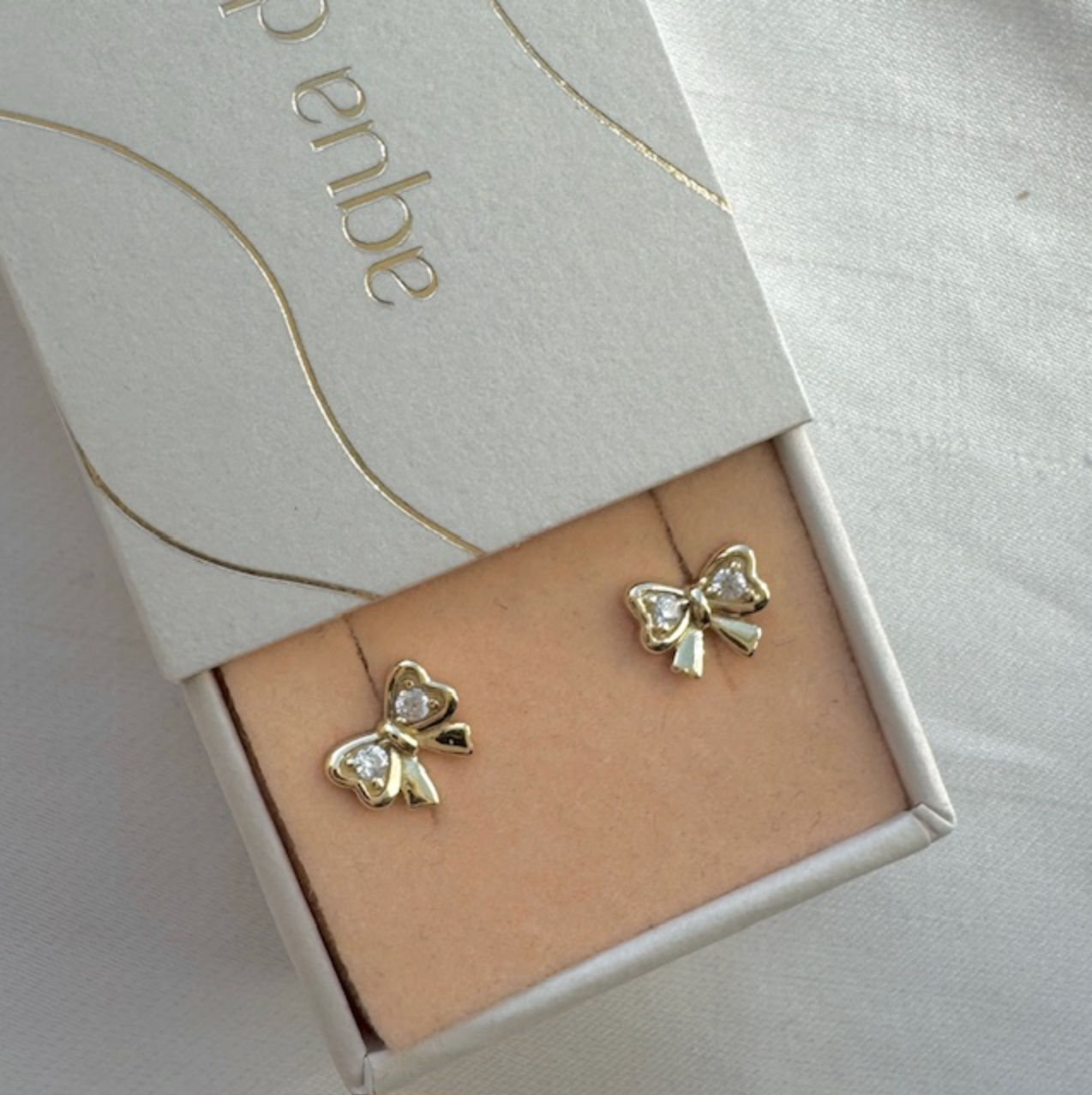 Fineste små sløjfe ørestikker med diskrete sten. En lille ørerne der kan bruges af børn, piger og kvinder.
