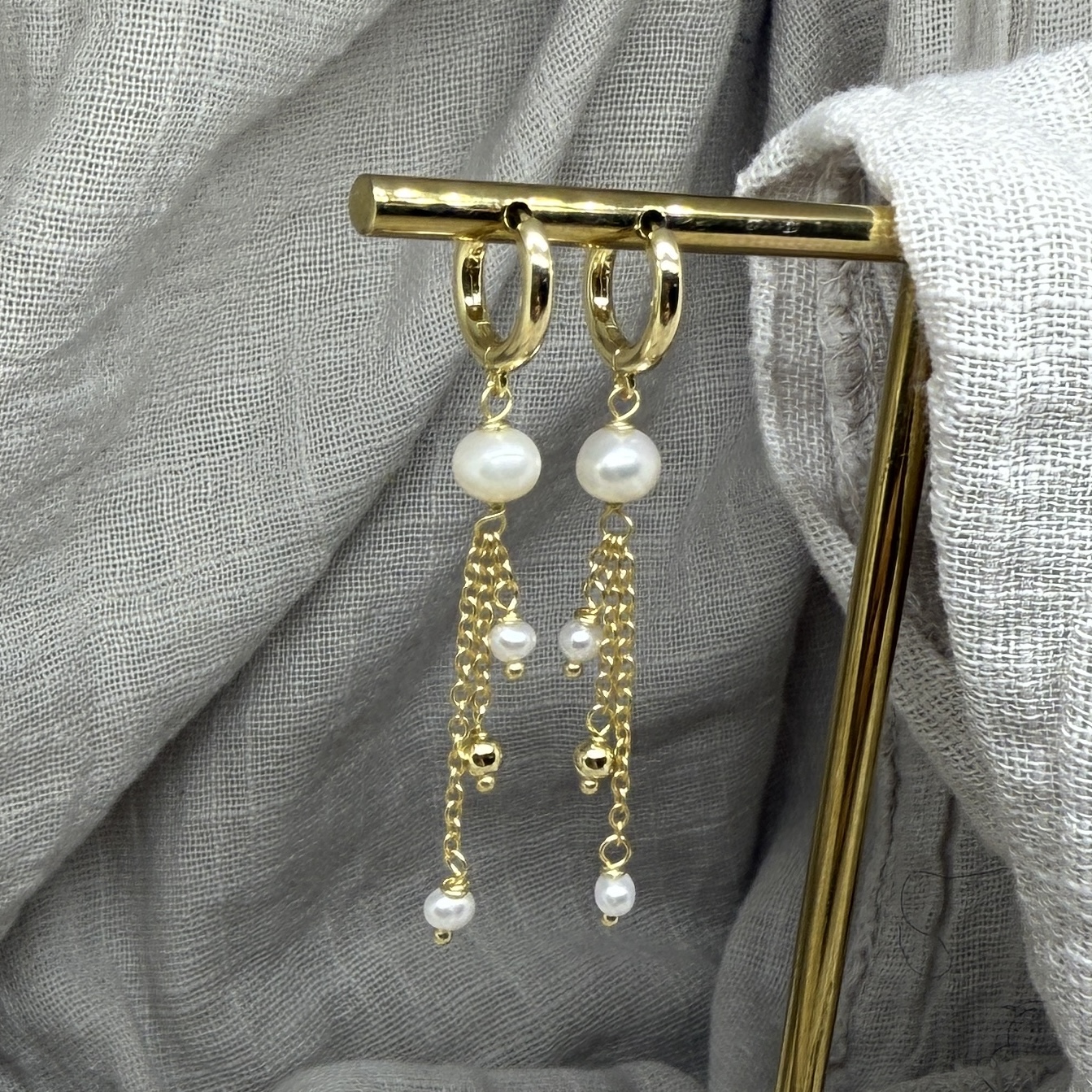 Hoop med ferskvandsperle og tråde som giver et elegant look!