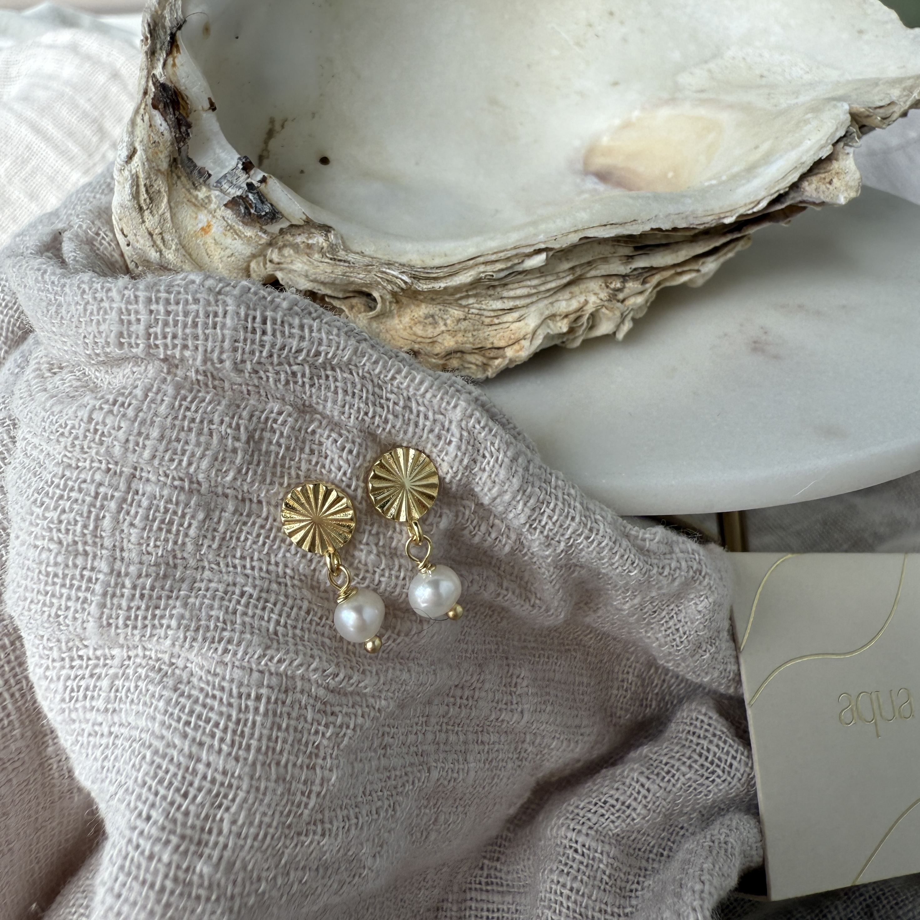 Ørering LINE PEARL Ørestikker forgyldt sølv 6 / 4 MM.