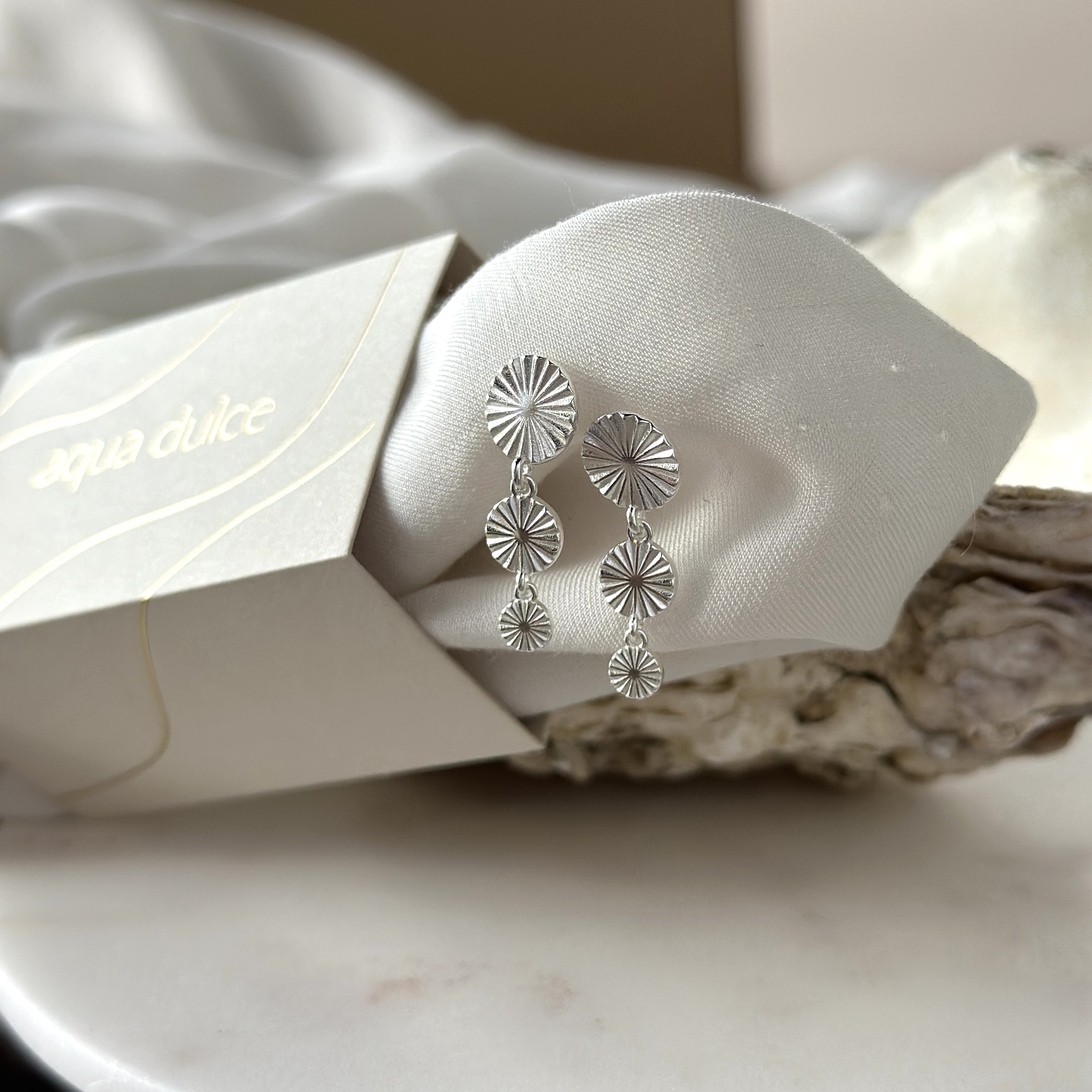 Disse smukke ørestikker er i forgyldt sterling sølv med 3 rillet mønter!