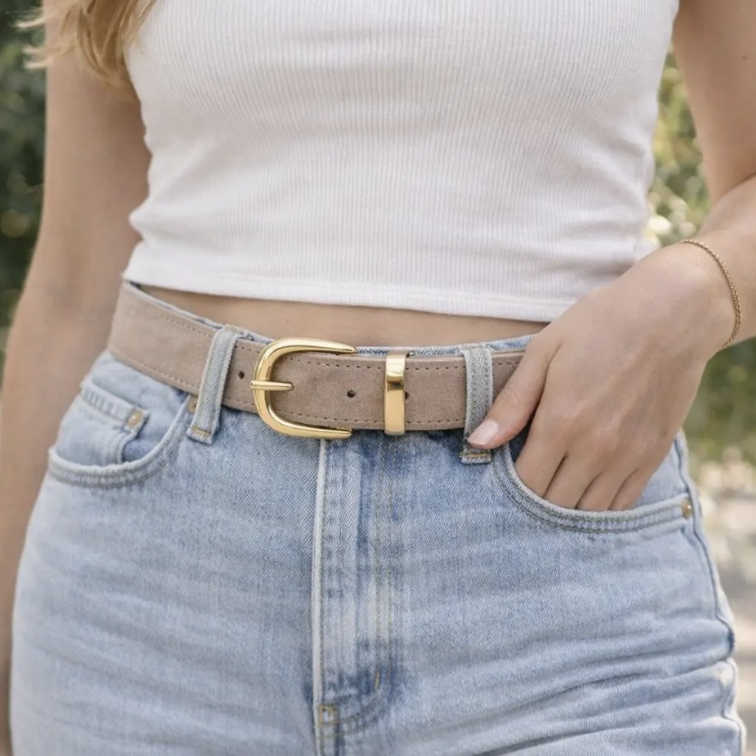 Gry bælte i beige med guld spænde