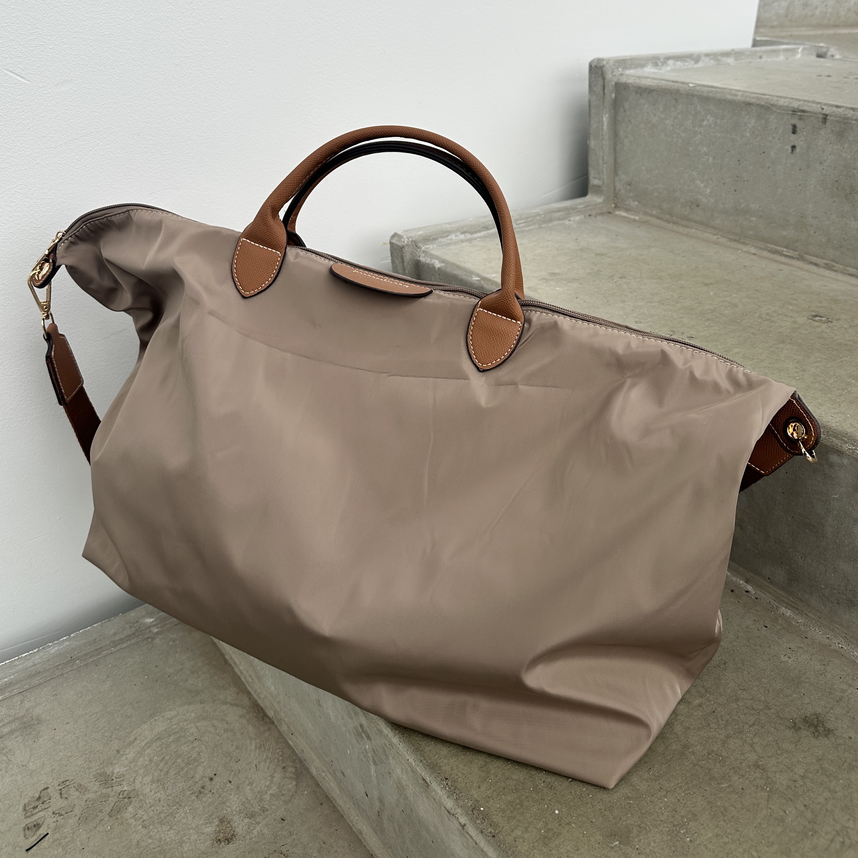 Denne skønne letvægt weekendtaske i nylon, fås i sort, brun og beige.