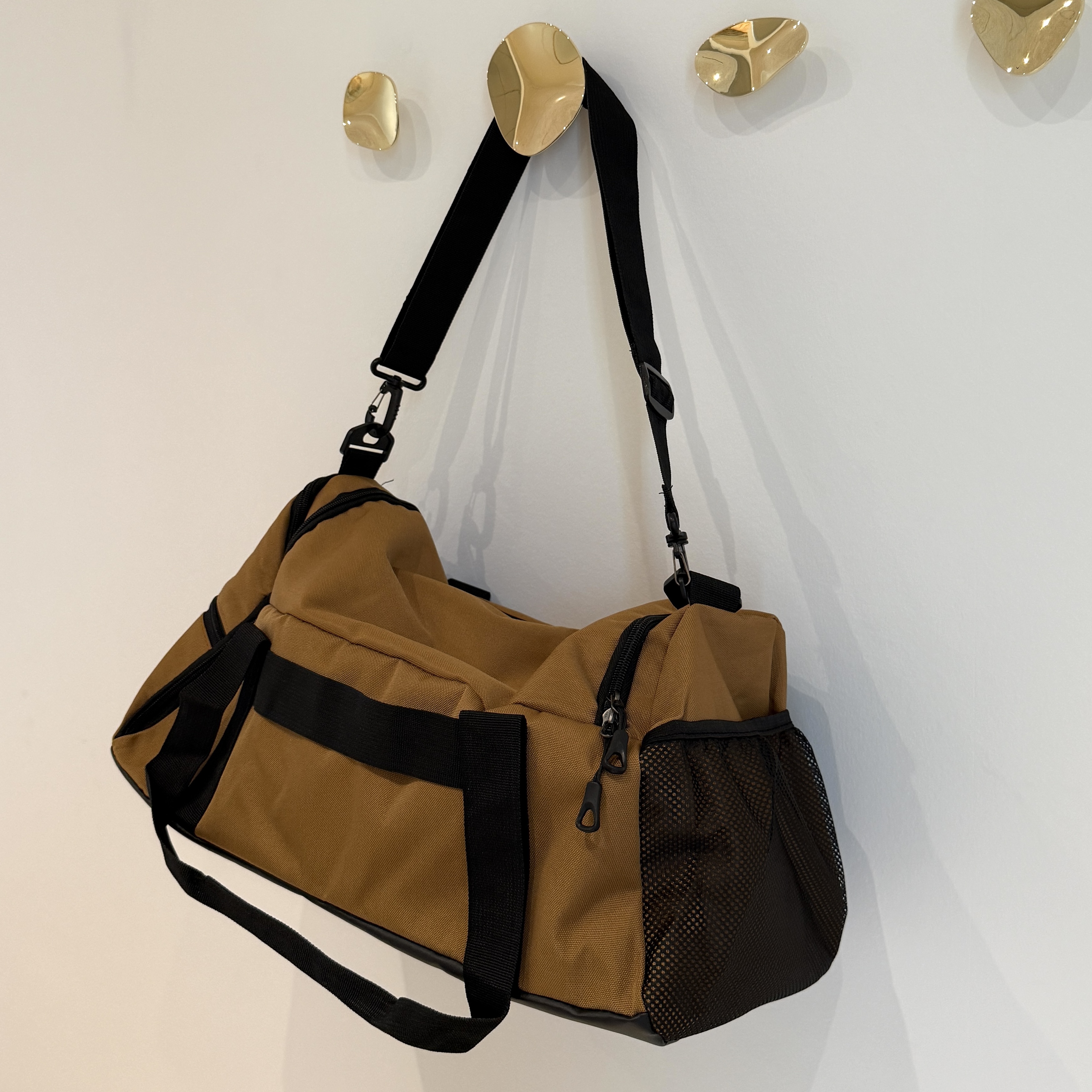 En rigtig fin sportstaske i sort og cognac.